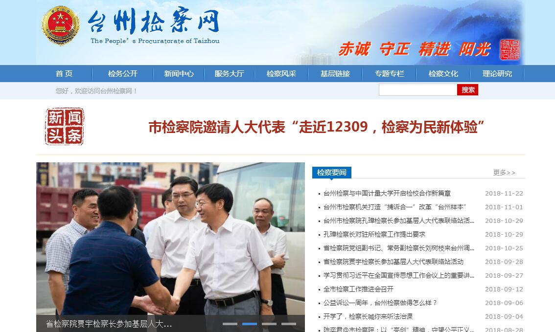 “台州地阔海溟溟,云水长和岛屿青”。台州兼得山海之利,台州人民开拓创新,敢为人先。在这片现代化的热土上,台州市人民检察院与这座年轻的滨海城市一样,锐意进取,生机勃勃。近年来,台州检察机关坚持党对检察工作的领导,找准法律监督宪法定位,牢牢把握检察工作方向;坚持执法为民宗旨,把维护人民群众合法权益作为检察工作的出发点和落脚点,努力促进和谐社会建设;坚持把维护稳定作为首要任务,着力化解矛盾纠纷,努力促进平安台州建设;坚持惩防并举方针,深入查办和预防职务犯罪,努力促进党风廉政建设;坚持维护法律尊严,强化检察职能,努力促进台州法治建设;坚持以人为本,倡导精细管理,不断完善工作机制和队伍管理机制,为促进经济发展、维护民生民利、确保社会和谐稳定作出了积极努力。在新的形势下,台州检察机关将认真学习贯彻党的十九大精神,紧紧围绕我市实施“创新驱动、转型发展”的战略总要求,全面贯彻实施修改后“两法”,践行“强化法律监督,维护公平正义”的检察工作主题,弘扬“赤诚、守正、精进、阳光”的台州检察精神,进一步提高执法能力和执法公信力,为全面建成惠及全市人民的小康社会提供更加有力的司法保障。台州检察事业的发展离不开广大网民朋友的关注和支持,近年来,广大网民朋友通过“台州检察网”、“台州检察微博”等渠道,或“潜水”,或“冒泡”,总是关注着检察事业的发展;或“盖楼”,或“拍砖”,都在推动着检察事业的进步。此次台州检察网的改版开通,是为了进一步倾听网络民声、了解网络民意、集中网络民智,让检察更加贴近群众,让群众更加了解检察,衷心希望广大网民朋友一如既“网”地关心支持,继续“打铁”,多多“给力”。实现公平正义是全社会的共同期盼,强化法律监督是检察人的不懈追求,让我们频繁互动,携手同进,在检察梦、法治梦、中国梦中不断前行!