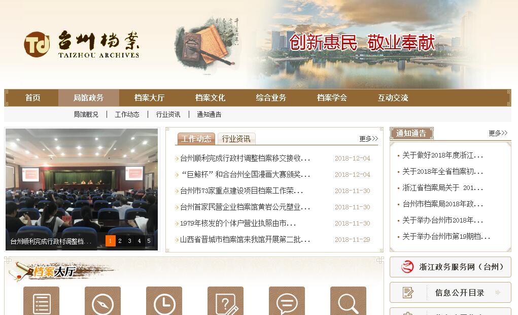 根据台市委办〔2002〕9号《关于印发〈台州市档案局(台州市档案馆)职能配置、内设机构和人员编制规定〉的通知》精神,台州市档案局与台州市档案馆一个机构、两块牌子,履行全市档案事业行政管理和市级档案管理、利用两种职能。市档案局归口市委办公室管理,为参照国家公务员制度管理的正处级事业单位。其主要职责是:(一)贯彻执行党和国家关于档案工作的方针、政策,对全市档案工作实行统筹规划、宏观管理。(二)贯彻实施《中华人民共和国档案法》、《〈档案法〉实施办法》、《浙江省实施〈档案法〉办法》,起草、制定本市档案工作制度和规范性文件,依法查处档案违法行为。(三)按照“统一领导、分级管理”的原则,对市直机关、群众团体、企事业单位,省部属在台州单位,各县(市、区)档案局(馆)、城建档案馆的工作进行监督指导。(四)集中统一管理市级档案资料,维护档案资料的完整,确保档案资料的安全。(五)负责接收、征集、整理、保管市直单位及其所属单位的重要档案以及社会上散存的具有全市意义的档案资料;运用现代化技术手段保护和管理档案。(六)开发档案信息资源,编纂、公布、出版档案史料,为经济和社会发展提供服务。(七)组织、协调、指导全市档案学术理论和科学技术研究工作,推进档案管理科学化、现代化建设。(八)制定档案工作人员队伍建设规划,组织档案专业干部培训;承担档案专业职务评聘的具体工作;负责全市档案系统对外交流工作。(九)完成市委、市政府交办的其他工作任务。