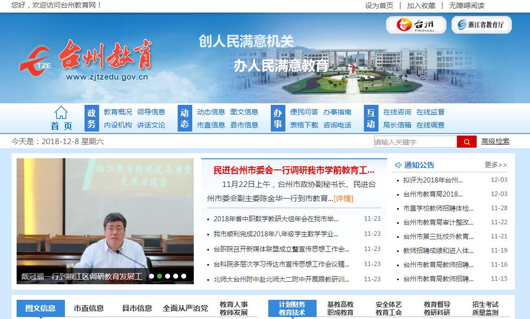 台州市教育局主要职责是:(一)贯彻执行党和国家的教育方针、政策和有关教育的法律、法规,研究全市教育改革与发展的重大问题,指导、协调县(市、区)、市级各部门有关教育工作;指导教育系统社会治安综合治理工作。(二)研究制订全市教育事业的发展规划、教育改革和实施素质教育的政策,提出教育事业发展的重点、结构、速度和步骤的意见,指导、协调并检查实施工作。(三)统筹管理全市基础教育、职业技术教育、成人教育、社会力量办学、高等教育和自学考试等工作;审核或审批普通高中、职业高中、中等职业技术学校(专业学校)的设置、更名、撤销与调整;指导和管理中等专业学校教育教学和专业设置。(四)管理全市的学历教育及招生考试工作;指导学生学籍管理工作,负责直属学校学籍管理;指导高中段教育及其以下各类教育的教学改革;组织教育教学研究,进行教育质量评估。(五)规划并指导全市中小学校、幼儿园的思想政治教育、体育、卫生、艺术教育和国防教育工作;指导全市学校少先队、共青团工作;指导全市校办企业、勤工俭学和高校后勤社会化工作;指导学校电化教育、图书和实验设备工作;指导全市教育信息化工作。(六)统筹规划并指导学校教师和管理人员的队伍建设工作;组织实施教师资格制度;组织指导学校教师专业技术职务的评审和聘任工作;管理和指导各级各类中小学在职教师的继续教育工作;负责师范类毕业生的就业指导工作;负责直属学校教师调动的审核工作;审核省特级教师、市名师名校长跨县(市、区)以上的调动。(七)统筹管理市本级教育经费;参与制定筹措教育经费、教育拨款、教育基建投资的方针、政策;监测全市教育经费的筹措和使用情况,指导教育系统的审计工作;会同有关部门制定高中的收费标准;负责全市教育基本信息的统计、分析和发布;指导直属学校(单位)基建、财务、固定资产的管理工作。(八)归口管理全市教育系统对外以及同香港、澳门特别行政区、台湾地区的教育交流及合作办学工作。(九)主管全市语言文字工作,贯彻国家语言文字工作的方针、政策,编制语言文字工作中长期规划,协调、监督和检查全市的语言文字法律法规的贯彻落实。(十)管理直属学校和事业单位。(十一)承办市委、市政府交办的其他事项。