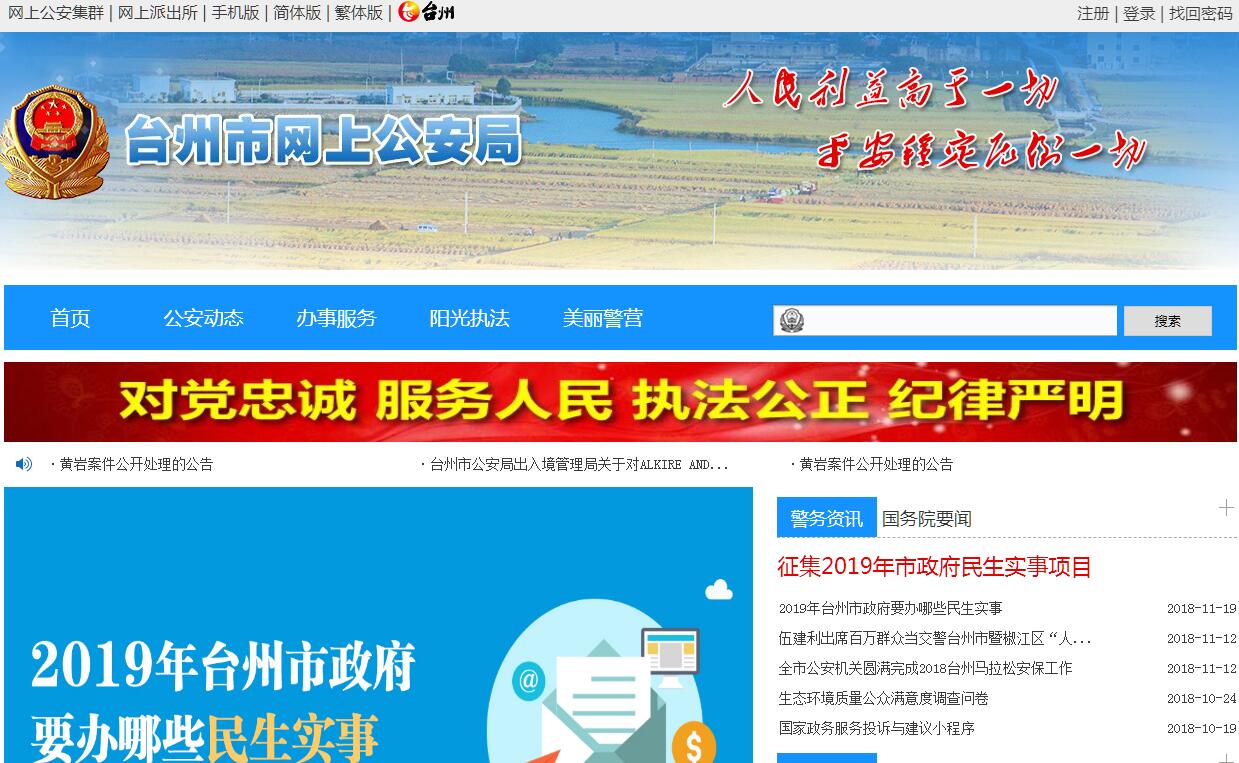 | 网站简介: 台州市公安局下辖4个直属分局、2个县级市局、4个县局,116个公安派出所。市局机关共45个内设机构。近年来,台州市公安机关在上级公安机关和各级党委政府的坚强领导下,以群众满意为追求,以“三项重点工作”和“三项建设”为核心,努力践行“两个最大”理念,大力推进社会管理创新,切实加强打防管控工作,有效推动了公安工作和队伍建设的长足进步,为维护台州社会稳定和谐作出了积极贡献。实现了“一稳定、三提高、三下降”的局面,即:政治大局持续稳定;打防控能力提高,打防控综合考评连续四年保持全省前列;执法质量提高,三门县局、路桥分局路桥派出所被评为全国执法质量示范单位,2011年,5个县(市、区)局获得省执法质量优秀单位称号,2个单位被评为全省执法示范单位;群众满意度提高,市公安局在“万名群众评选满意机关”活动中连续六年名列同类单位第一名,被评为全市人民满意机关示范单位;群体性事件、刑事发案和交通、消防安全事故数全面下降。我市多项工作走在全省乃至全国前列,据不完全统计,共荣获40项全国先进、36项全省第一,104项全省先进。 |