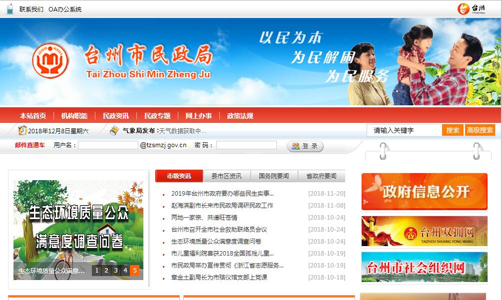 台州市民政局是台州市政府主管全市有关社会行政事务的职能部门。现局机关内设办公室、救灾救济和社会福利处、优抚安置处、基层政权和公共事务处、民间组织管理局、监察室等6个行政处室,下属有市殡葬执法支队、市地名办、市社会福利工业办公室、市民政办证中心、市儿童福利院、市救助管理站、市殡仪馆、市社会福利有奖募捐委员会办公室(市彩票管理中心)等8个事业单位,市拥军优属拥政爱民领导小组办公室常设我局。其主要职责是:(一)贯彻执行民政工作的法律、法规、规章;研究起草有关民政行政管理的地方规范性文件草案,制定全市民政事业的发展规划、工作计划和政策,并组织实施;指导基层民政工作。(二)会同有关部门拟订全市社会工作发展规划、工作计划和政策,推进全市社会工作人才队伍建设和相关志愿者队伍建设。(三)负责全市社会团体、民办非企业单位、基金会登记的监督管理工作。(四)负责全市拥军优属、优待抚恤和烈士褒扬工作,承办伤残等级的审核、烈士称号的报批工作。(五)负责复员、退伍军人和军队离休退休干部、军队无军籍退休、退职职工等接收安置管理工作;协调、指导有关县(市、区)的军供管理和保障工作。(六)承担市双拥领导小组办公室的日常工作。(七)组织、协调全市救灾减灾工作,核查上报发布灾情,监督管理救灾款物分配、使用;组织制定自然灾害应急预案,指导避灾安置场所建设和管理;组织、指导社会救灾捐赠,负责接收社会捐赠;指导全市政策性农村住房保险倒塌房屋争议裁定工作。(八)牵头拟订全市社会救助规划、政策,健全城乡社会救助体系;指导和监督全市实施城乡居民最低生活保障、医疗救助、临时救助、生活无着人员救助工作;指导全市低收入家庭核定工作。(九)拟订全市社会福利事业发展规划、政策;指导老年人、孤儿等特殊困难群体的权益保障工作;组织、指导养老服务体系建设;指导农村五保供养工作,指导农村敬老院建设和管理;指导、协调全市革命老区扶贫工作,指导农村老党员、老交通员、老游击队员的生活困难定期补助工作。(十)指导城乡基层政权和基层群众自治组织建设工作;指导社区服务管理和村务公开民主管理工作,推进城乡社区建设。(十一)指导全市行政区划管理,承办县(市、区)和乡镇(街道)设立、撤销、调整、更名的审核报批工作;负责行政区域界线的勘定和日常管理工作,调处行政区域边界争议;会同住房和城乡建设规划局组织编制、公布行政区划信息。(十二)指导全市地名标志的设置和管理;承办市级权限内的地名命名、更名的审核报批工作;承办台州经济开发区范围内地名标志的设置更新和管理工作;负责全市标准地名资料的编辑和审定。(十三)指导城市生活无着的流浪乞讨人员的救助工作;负责台州主城区生活无着的流浪乞讨人员救助、保护、教育和护送回原籍工作。(十四)指导全市婚姻登记管理工作;负责管理港澳台居民、华侨、外国人在本市的婚姻登记工作。(十五)指导全市收养登记工作,负责管理港澳台居民、华侨在本市的收养登记工作。(十六)组织拟订殡葬发展规划和政策,推行殡葬改革;承办公墓建设的审核报批工作;指导全市殡仪馆建设和殡葬执法工 作;管理港澳台居民、华侨、外国人在本市的丧葬有关事宜。(十七)负责市级福利彩票公益金的管理工作。(十八)负责民政事业计划财务和统计工作,指导、监督民政事业费的使用管理。(十九)办理市老龄工作委员会决定的事项。综合协调全市老龄工作。(二十)承办市政府交办的其他事项。
