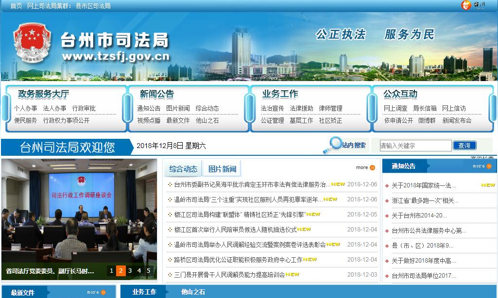 台州市司法局主要职责是:(一)贯彻执行国家司法行政工作方针、政策、法律、法规;编制司法行政工作的中长期规划和年度计划并监督实施。(二)制订全市法制宣传与普法教育的规划并组织实施;指导各县(市、区)、各行业的依法治理和法制宣传工作。(三)指导监督全市律师、法律顾问和法律援助工作;综合管理社会法律服务机构和国外(境外)在我市设立的律师机构。(四)指导监督全市公证机构和公证业务活动。(五)指导全市司法行政机关管理基层司法所和法律服务、人民调解、社区矫正、刑释人员安置帮教工作;协调全市“12348”法律服务工作;参与社会治安综合治理工作。(六)指导监督全市司法行政系统行政处罚、行政复议、应诉和国家赔偿案件的办理;指导面向社会服务的司法鉴定工作。(七)负责制定全市司法行政干部和法律服务人员的业务教育培训规划并组织实施。(八)指导全市司法行政系统队伍建设和思想政治工作;协助县(市、区)委组织部管理司法行政机关领导班子;配合做好律师专业技术职务的评审工作。(九)负责对全市司法行政队伍的党纪、政纪和廉政教育,按照管理权限负责对违纪、违规党员干部的查处;负责局直属单位的内部审计工作;指导全市司法行政系统的内部审计工作。(十)指导协调全市司法行政系统的通信信息技术网络建设;指导管理全市司法行政系统服装、车辆、通讯器材等物资装备。(十一)承办市政府交办的其他事项。