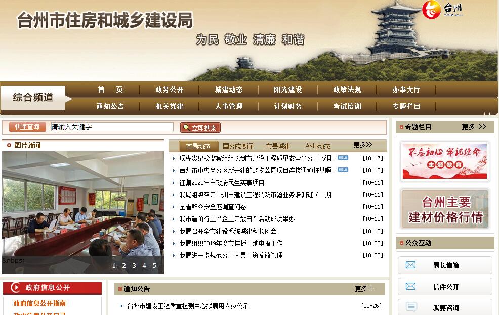 台州市住房和城乡建设局主要职责是:(一)组织编制城镇住房保障发展规划和年度计划并监督实施,拟订城镇住房保障政策并指导实施。牵头监督指导全市保障性安居工程建设,负责城镇低收入住房困难家庭基本住房保障。会同有关部门承担保障性安居工程资金安排等相关工作。(二)起草住房和城乡建设的地方性法规、规章草案,拟订全市住房建设规划、住房政策并指导实施。指导住房建设和住房制度改革,研究住房和城乡建设的重大问题。(三)负责住房和城乡建设领域资质资格管理,按照职责分工指导或组织对住房和城乡建设领域违法违规行为进行查处。落实建筑活动监管中的生态环境保护要求,按照职责分工指导协调城市建筑工地、城镇基础设施建设涉及的污染防治工作。负责建筑、房地产行业安全生产监督管理,指导城市建设的安全生产管理工作。(四)制定全市工程建设地方标准和工程造价计价依据并监督实施,制定公共服务设施(不含通信设施)建设标准并监督实施,指导监督各类工程建设标准定额实施和工程造价计价,组织发布工程造价信息。(五)拟订房地产市场监管政策并监督执行,组织开展房地产市场的监测分析,提出房地产业的行业发展规划和产业政策建议,拟订城市房地产开发、房屋交易、房屋租赁、房屋面积、房地产估价与经纪、房屋征收补偿、房屋使用安全、房屋白蚁防治等管理制度并监督执行。(六)拟订全市城市建设事业的政策、发展规划并指导监督实施,参与推进城市化工作,指导全市城市市政公用基础设施规划建设工作。负责城市地铁、城市轨道交通工程质量和安全监督管理。(七)拟订村镇建设管理政策并指导实施,参与全市农村人居环境提升相关工作,参与乡村振兴战略和美丽乡村建设。指导农房设计、农村住房建设和安全及危房改造。(八)制定建筑业、勘察设计业、监理造价咨询业发展规划、产业政策并组织实施,制定建筑市场制度和信用标准并监督执行,组织推进建筑工业化、工程总承包、全过程工程咨询,指导建筑业企业对外承包工程,按照职责分工对建设工程招标投标活动实施监督。(九)制定建筑工程质量安全发展战略、规划并组织实施。制定建筑工程质量、建筑安全生产和竣工验收备案的政策并监督执行。组织或参与工程较大质量、安全事故的调查处理,制定建筑业技术政策并指导实施,组织推进工程质量安全标准化管理和品牌工程创建工作。(十)拟订全市住房和城乡建设的科技发展规划及政策,会同有关部门拟订建筑节能与绿色建筑的政策、规划并监督实施,按照职责分工推进住房和城乡建设领域城镇减排工作。指导历史文化名城名镇名村保护、城市地下空间开发利用建设、城市雕塑建设等工作。(十一)组织实施住房和城乡建设方面的国际金融组织贷款项目和对外交流合作。(十二)完成市委、市政府交办的其他任务。