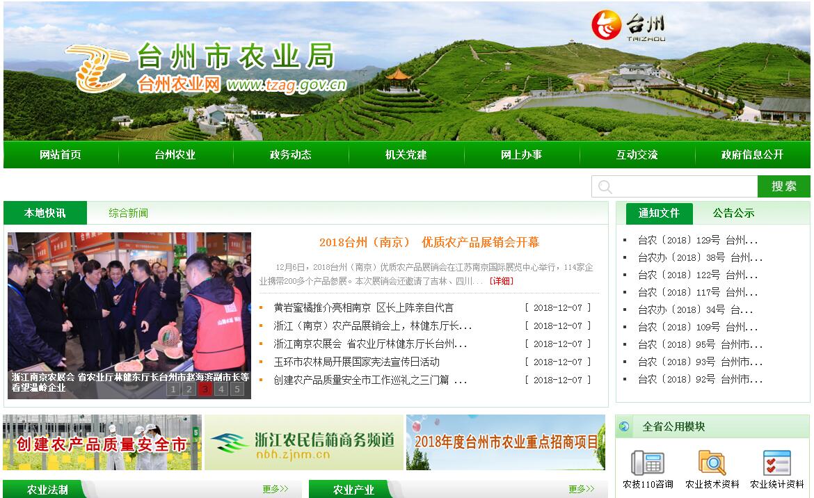 台州市农业局是主管全市农业和农村经济发展的市政府工作部门。其主要职责:(一)拟订种植业、畜牧业、农业机械化、国有农场等农业各产业和农村经济发展战略、中长期发展规划,经批准后组织实施,负责拟订全市有关农业的技术政策和产业政策;拟订农业及有关农村经济发展的规划、措施和重大经济政策,并组织实施;拟订农业开发规划并监督实施;负责现代农业园区、粮食生产功能区建设规划的实施;参与涉农的财税、价格、金融保险等政策制定。(二)负责完善农村经营管理体制。提出深化农村经济体制改革和稳定、完善农村基本经营制度的政策建议,指导农村土地承包、耕地使用权流转和承包纠纷仲裁管理。指导监督减轻农民负担工作,指导农村集体资产和财务管理。指导扶持农业社会化服务体系、农村经济合作组织、农民专业合作社和农产品行业协会的建设与发展。(三)指导粮油、畜禽产品、蔬菜、水果、鲜切花等主要农产品生产,指导协调农业生产的安全监督管理,组织落实促进农产品生产发展的相关政策措施,指导农业产业结构调整、农业资源配置和农产品品质的改善。提出扶持农业农村发展的财政政策和项目建议,经批准后与有关部门共同制定实施方案并组织实施。提出市级财政农业专项转移支付项目预算建议。指导国有农场建设管理工作。参与农业综合开发和新农村建设工作。(四)拟订农业产业化发展规划与政策并组织实施。拟订全市农业产业化发展有关政策,指导农产品加工、流通和营销管理工作,会同有关部门指导农产品流通体制改革。提出大宗农产品及重要农业生产资料的进出口建议,拟订大宗农产品市场体系建设与发展规划,指导高效生态农业、设施农业、休闲观光农业和外向型农业的发展,指导休闲观光农业的安全管理工作,指导农业国内展示展销活动,培育、保护和发展农产品品牌。指导草本花卉种子种苗生产,负责鲜切花卉行业管理。(五)负责农产品生产环节的质量安全。依法开展农产品质量安全风险评估,发布有关农产品质量安全状况信息,负责农产品质量安全监测。制定农业产业生产技术规范并组织实施。会同有关部门指导农业标准化、规模化生产。指导农业检验检测体系建设,实施相关考核。依法开展符合安全标准的农产品认证和监督管理,划定农产品禁止生产区域。(六)履行市委人才领导小组成员单位职责,统筹实施农业人才工作。指导农业专业人才、农业产业主体经营人才、现代职业农民和农村实用人才队伍建设,组织实施农村实用人才开发工程,参与优秀农村实用人才的选拔、培养和管理,负责农业农村人才培训。会同有关部门实施农业专业技术资格评审和从业资格管理。(七)组织、指导农业行政执法、农业法制监督和农业法规宣传工作。起草农业地方性政策草案,指导农业行政执法体系和农资信用体系建设。依法开展农作物种子种苗(含食用菌菌种)、种畜禽、蚕种、兽药等生产经营的许可及监督管理。负责兽医医疗器械、肥料及相关农业生产资料的监督管理。依法组织查处农业违法行为,指导、协调农业生产事故(纠纷)处理工作。指导农业机械化发展和农机安全监理。(八)负责农作物病虫害防治和动物疫病防控。会同有关部门制定动植物防疫检疫政策并指导实施,指导动植物防疫和检疫体系建设。组织对动植物疫情疫病的监测,依法发布疫情并组织扑灭,组织、监督动植物防疫检疫以及动物卫生监督执法工作。组织兽医医政、兽药药政药检工作。负责农业外来有害生物治理和外来物种管理工作。指导农业防灾救灾工作,组织种子等救灾物资储备和调拨。(九)负责农业信息工作,监测分析农业和农村经济运行,开展相关农业统计工作。发布农业和农村经济信息,指导农业信息体系建设和信息服务工作。(十)拟订农业技术推广及其队伍建设的发展规划和有关政策,实施科教兴农战略。指导农业技术推广体系建设,负责农业科技成果管理,做好农科教协作有关工作。指导农业教育和农业职业技能开发工作,会同有关部门组织农业产业技术体系建设,组织实施农业科技成果转化和技术推广。(十一)参与组织农业资源区划、区域开发计划工作,拟订耕地及基本农田质量保护与改良政策并指导实施,依法管理耕地质量。指导农用地、农业生物物种资源的保护管理工作。参与基本农田和标准农田保护工作,参与小型农田基本建设、土地整治、中低产田改造及“四荒地”的开发利用工作。运用工程设施、农艺、农机、生物等措施发展节水农业。(十二)负责全市农村能源开发利用和优化农业环境建设的监督管理。拟订农业生态建设规划,指导生态农业、循环农业和农业可持续发展工作。指导农村可再生能源综合开发与利用,指导农业面源污染治理、农业废弃物资源化综合利用,指导农业生物质产业发展和农业农村节能减排有关工作。(十三)负责农作物品种管理、农业植物新品种保护和农业转基因生物安全监督管理,按分工负责农业野生植物保护工作。(十四)承办农业涉外事务,组织开展农业贸易促进和国际间农业经济、技术交流与合作。参与农业对外援助政策和规划制定,协助有关部门组织实施农业援外项目。(十五)生猪定点屠宰监管。(十六)承办市政府交办的其他事项。