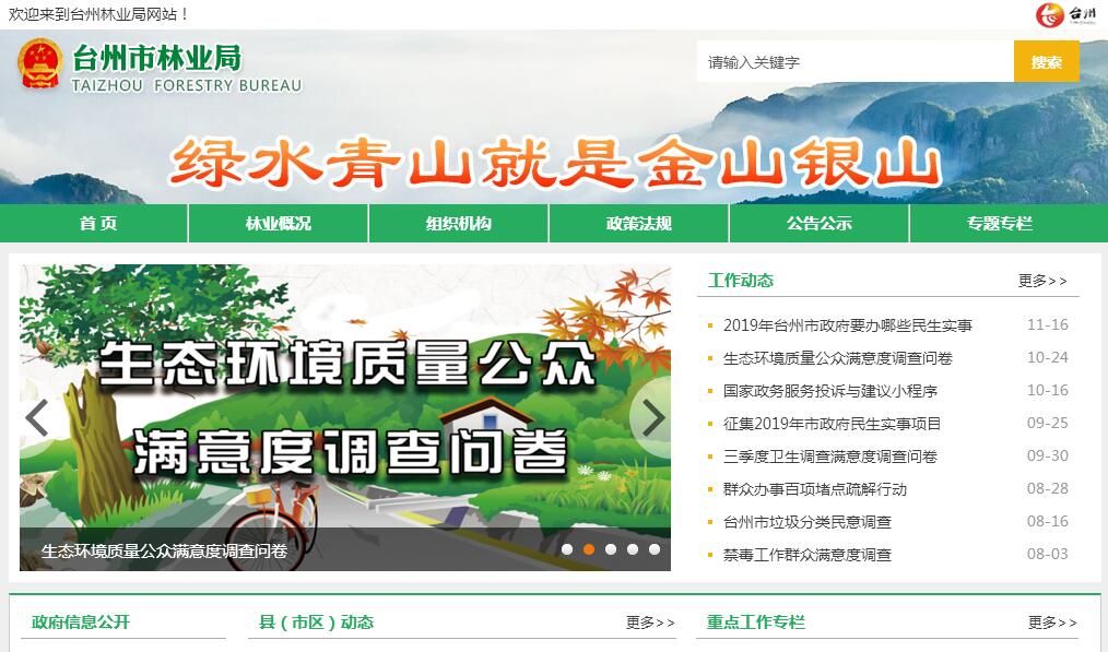台州市林业局主要职责:(一)宣传贯彻执行党和国家有关林业和森林资源保护管理 的方针、政策和法律、法规、规章;受委托研究起草市级有关林业和森林资源保护管理的规范性文件,经审议通过后组织实施;组织拟订林业发展、保护和合理利用森林资源的地方标准和技术规程并监督执行;负责有关林业执法、行玫应诉、行政复议工作。(二)拟订全市林业生态建设、森林资源保护和国土绿化的发展规划并组织实施;拟订农村林业发展、维护农民经营林业合法权益的政策措施;监管国有林业资产,审核、编报全市重点林业建设项目。(三)组织、协调、指导和监督全市造林绿化工作;指导森林经营工作;指导各类公益林和商品林的培育和管理;组织指导植 树造林、封山育林和以植树造林、封山育林等生物措施防治水土 流失工作;制定全市造林绿化的指导性计划;指导国有林场、苗 圃、森林公园及林业工作站、集体林场的建设和管理;组织指导林木种子种苗的管理工作;承担林业应对气候变化的相关工作。(四)承担森林资源保护发展监督管理的责任;组织、指导全市森林资源调查、动态监测和统计;组织编制全市编制森林采伐限额方案,经省政府批准后监督执行;监督检查林木、毛竹的凭证采伐与运输;指导和监督林地管理、林权制度改革工作;指导和监督林地保护利用规划编制并实施;依法对林地征用、占用进 行审核、审批;按规定权限承担国有森林资源资产产权变动的审 核、备案工作。(五)依法组织、指导陆生野生动物资源和林区内野生植物、 林区外珍贵野生树木资源的保护、合理开发利用、救护繁育、栖息地恢复发展和疫源疫病监测,监督管理陆生野生动物和林区内 野生植物、林区外珍贵野生树木猎捕或采集、驯养繁殖或培植、经营利用。组织、协调、指导和监督全市湿地保护、林业系统自然保护区管理工作;监督管理林业生物种质资源、植物新品种保 护,按分工负责生物多样性保护工作。(六)指导全市森林公安工作;监督管理森林公安队伍。组 织、协调、指导和监督森林防火和火灾扑救工作。(七)指导、协调、监督森林病虫害防治、森林植物检疫、外来林业有害生物入侵的防范等林业灾害防控工作。(八)承担推进林业改革;维护农民经营林业合法权益的责 任;指导、监督农村林地承包经营和林权流转;组织、指导山林纠 纷调处和林地承包合同纠纷仲裁。(九)组织、指导全市林业产业发展工作;制定全市林业产业中长期发展规划;指导林业特色基地、龙头企业和森林旅游业 的发展;组织、指导林产行业协会、经济合作组织建设;组织、指导全市林业标准化、林业技术监督、林产品质量监督的有关工作。(十)组织、指导林业建设的科技、教育、宣传工作;协调林业系统对外交流和合作;指导全市林业队伍建设。(十一)承办市政府交办的其他事项。