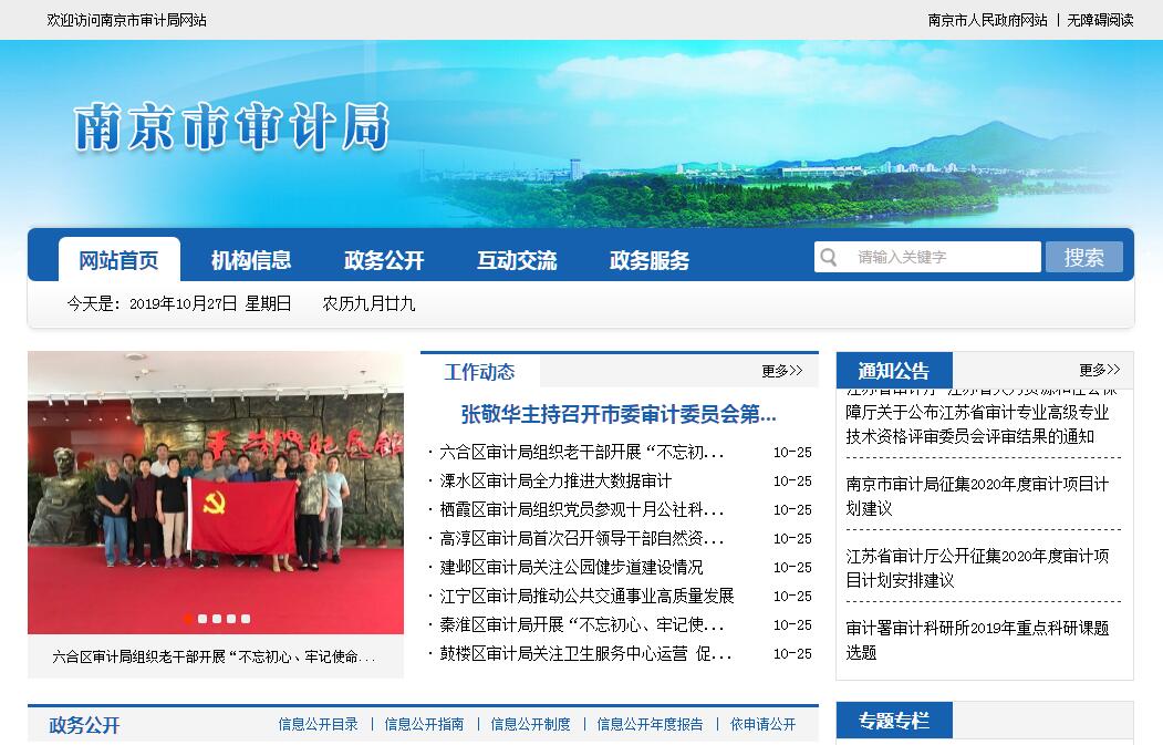 南京市审计局主要职责:(一)主管全市审计工作。参与起草审计、财政经济方面的地方性法规、规章草案,提出相关政策建议。负责对市财政收支和法律、法规规定属于审计监督范围的财务收支的真实、合法和效益进行审计监督,维护财政经济秩序,提高财政资金使用效益,促进廉政建设,保障全市经济和社会健康发展。对审计、专项审计调查和核查社会审计机构相关审计报告的结果承担责任,并负有督促被审计单位整改的责任。(二)制订并组织实施审计工作发展规划和专业领域审计工作规划,制订并组织实施年度审计计划,对直接审计、调查和核查的事项依法进行审计评价,做出审计决定或提出审计建议。(三)向市政府和省审计厅提交年度市级预算执行和其他财政收支情况的审计结果报告。受市政府委托向市人大常委会提出市级预算执行和其他财政收支情况的审计工作报告、审计发现问题的纠正和处理结果报告。向市政府和省审计厅报告对其他事项的审计与专项审计调查情况及结果。依法向社会公布审计结果。向市政府有关部门和区政府通报审计情况及审计结果。(四)直接审计下列事项,出具审计报告,在法定职权范围内做出审计决定或向有关主管机关提出处理处罚的建议:1、市级预算执行情况和其他财政收支,市直各部门(含直属单位)预算的执行情况、决算和其他财政收支。2、区政府预算的执行情况、决算和其他财政收支,市级财政转移支付资金。3、使用市级财政资金的事业单位和社会团体的财务收支。4、市级政府投资和以市级政府投资为主的建设项目的预算执行情况及决算。5、市属国有企业和金融机构、市政府规定的市属国有资本占控股或主导地位的企业和金融机构的资产、负债及损益。6、市政府部门、区政府管理和其他单位受市政府及其部门委托管理的社会保障基金、社会捐赠资金及其他有关基金、资金的财务收支。7、根据上级审计机关授权,对国际组织和外国政府援助、贷款项目的财务收支进行审计监督。8、法律、行政法规和地方性法规规定应由市审计局审计的其他事项。(五)按规定对市管领导干部及依法属于市审计局审计监督对象的其他单位主要负责人实施经济责任审计。(六)组织实施对国家财经法律、法规、规章、政策和宏观调控措施执行情况、财政预算管理或国有资产管理使用等与市财政收支有关的特定事项进行专项审计调查。(七)依法检查审计决定执行情况,督促纠正和处理审计发现的问题,依法办理被审计单位对审计决定提请行政复议、行政诉讼或市政府裁决中的有关事项。协助配合有关部门查处相关重大案件。(八)指导和监督内部审计工作,核查社会审计机构对依法属于审计监督对象的单位出具的相关审计报告。(九)与区政府共同领导区审计机关。依法领导和监督区审计机关的业务,组织区审计机关实施特定项目的专项审计或审计调查,纠正或责成纠正区审计机关违反国家规定做出的审计决定。按照干部管理权限协管区审计机关负责人。(十)指导和推广信息技术在全市审计领域的应用,组织建设全市审计信息系统。(十一)承办市委、市政府和上级审计机关交办的其他事项。
