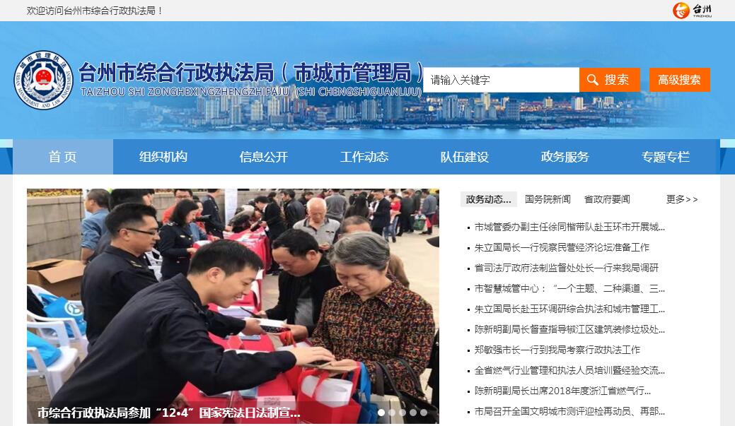 台州市城市管理行政执法局成立于2009年9月30日。根据《浙江省城市管理相对集中行政处罚权条例》和省政府有关批复规定,依法统一行使市容环境、城乡规划、城市绿化、市政公用、环境保护、工商行政、公安交通和城市河道等8个方面的法律、法规、规章规定的全部或部分行政处罚权。市和各县(市、区)两级城市管理行政执法局均为政府组成部门,市区实行城市管理行政执法局(分局)与城市管理行政执法支队(大队)“一个机构、两块牌子”。市局内设5个处室(办公室、政治处、法制处、执法监督处、指挥中心),下设建筑垃圾处置信息中心和三个直属大队。直属一大队管辖经济开发区、台州湾集聚区和“绿心”范围,履行“7+1”全部职能;直属二、三大队专门负责黄岩、路桥的城乡规划执法工作。市公安局派驻治安机动支队在市执法局办公。2017年4月1日,台州市综合行政执法局(市城市管理局)正式挂牌成立,综合行政执法、城市管理合署办公。内设8个处室(办公室、组织人事处、法制处、督查处、宣传教育处、计划财务处、城管一处、城管二处),下设直属分局(直属大队)、集聚区分局(集聚区大队)、机动大队三个派出机构;另下属四个事业单位:智慧城管中心、市容环卫服务中心、市政公用事业服务中心、园林绿化养护事务中心。其主要职责:(一)市综合行政执法局主要职责。1. 贯彻执行国家和省、市关于综合行政执法工作的法律法规规章和方针政策,研究制定全市综合执法的地方性法规、规章草案及规范性文件,并组织实施。2. 负责对全市综合行政执法工作的指导、协调、检查和监督。3. 负责行使市本级范围内市容环境卫生、城乡规划、城市绿化、市政公用、环境保护、工商行政管理(室外公共场所无照经营)、公安交通(人行道违法停车)、土地和矿产资源、建筑业、房地产业、人防、水行政、安全生产、石油天然气管道保护、陆域渔政、林政、教育、商务、旅游、价格、体育管理等21个方面法律、法规、规章规定的全部或部分行政处罚权及相关行政监督检查、行政强制职权。以上纳入综合行政执法的职权经省政府批准后,以市政府名义向社会公告后分步实施到位。4. 负责组织市区范围内综合行政执法有关专项工作和重大执法活动,负责对跨区域案件、重大案件依法进行查处。根据工作需要,可直接行使综合行政执法范围内的行政处罚及相关行政监督检查、行政强制职权。5. 负责加强并指导全市综合行政执法队伍建设,组织开展全市综合行政执法人员业务培训。6. 承担市综合行政执法协调指挥领导小组办公室日常工作。7. 负责受理综合行政执法中的举报投诉,承担行政复议和行政应诉工作。8. 承办市委、市政府和上级部门交办的其他事项。(二)市城市管理局主要职责。1. 贯彻执行国家和省、市关于城市管理工作的法律法规规章和方针政策,研究制定全市城市管理的地方性法规、规章草案及规范性文件,并组织实施。2. 负责编制城市管理发展战略、中长期发展规划和年度计划,并组织实施。3. 负责对全市市政公用设施运行管理、市容环境卫生管理、园林绿化管理、物业管理工作的指导、协调、检查和监督。4. 负责市管的市政公用设施运行管理、市容环境卫生管理、园林绿化管理、物业管理及涉及到的相关行政许可;会同财政部门编制城市管理维护和行政执法经费年度计划,并组织实施和监管使用。5. 负责加强并指导全市城市管理队伍建设,组织开展全市城市管理人员业务培训。6. 负责市智慧城管的建设管理工作,指导各县(市、区)开展智慧城管的相关工作。承担市城市管理委员会办公室日常工作。7. 负责受理城市管理中的举报投诉,承担行政复议和行政应诉工作。8. 承办市委、市政府和上级部门交办的其他事项。