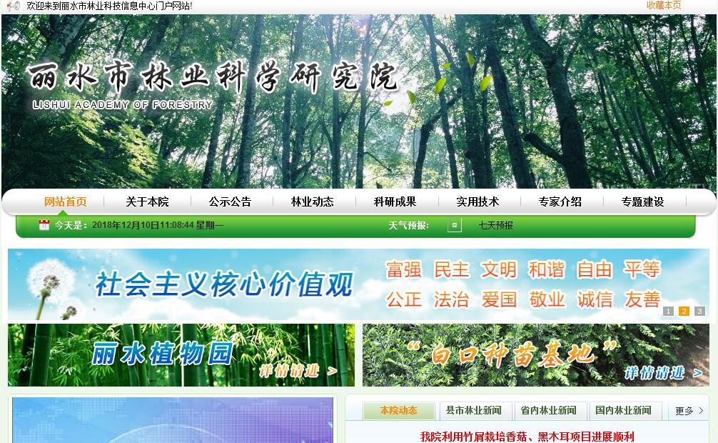 丽水市林科院是浙江省重点林业科研院所,前身是丽水市林业科学研究所,成立于1975年,2008年由“所”改“院”。内设中药材研究所、森林资源与环境研究所、果树研究所、食用菌研究所、竹类研究所5个业务科室,拥有中药材、野生资源开发利用、食用菌、果树、竹子、园林等专业科技人员22人,其中:教授级高工9人,高级工程师9人;博士后1人,博士4人,在读博士1人,19人具博士、硕士、推广硕士学位;省有突出贡献中青年专家1人;培养期内的省151重点资助培养对象及第一层次1人及第三层次4人、丽水市首席专家3人、市突贡专家1人,丽水市138第一层次2人,丽水市138第二层次4人,丽水市拔尖人才2人、绿谷新秀3人。近五年来,承担浙江省科技厅农业重大专项“浙西南特色经济树种种质资源收集保存与开发利用研究”等科研项目共50多项;获市级以上科技成果奖项20余项,其中:获省部级二等奖2项、三等奖6项,厅局级一等奖3项、二等奖9项、三等奖8项;培育柚类良种3个,香菇新品种2个;获发明专利5项、实用新型专利1项;发表研究论文100多篇。在中药材种质资源收集与鉴定、牛肝菌仿生栽培、森林野菜有机化栽培、水果等林木良种选育等方面具全国同类研究领先水平。