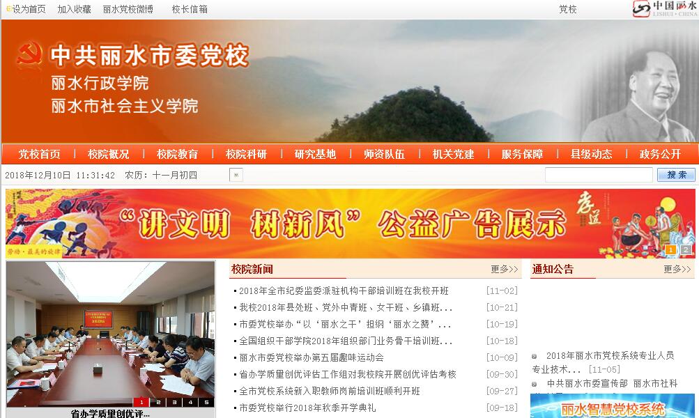 1963年6月,中共丽水地委党校创建,1993年6月,成立丽水地区行政学院。2000年8月丽水撤地设市后,更名为中共丽水市委党校、丽水行政学院,2000年8月,成立丽水社会主义学院。中共丽水市委党校位于浙江省丽水市莲都区凌云街261号,于2016年10月投入使用。一期用地面积为59423平方米,总建筑面积39567平方米,集培训科研、餐饮住宿、文体中心功能于一体。二期预留用地14928平方米。中共丽水市委党校实行“一校两院”(中共丽水市委党校、丽水行政学院、丽水市社会主义学院)管理体制。市委常委、组织部长兼任党校校长;市委常委、常务副市长任行政学院院长;市委常委、统战部长任社会主义学院院长。“一校两院”日常工作实行党委负责制,党委成员5人。内设办公室、经济理论教研室、公共管理与法学教研室、政治与统战理论教研室、党性教育研究室、社会文化教研室、市情研究所、教务处、科研处、培训处、学员工作处、信息档案处(图书馆)、行政处等13个处室和机关党委、校工会。现有教职工55人,其中副高职称18人,博士1人,硕士(研究生)26人。肩负历史重任,把握时代大势,按照“干在实处永无止境,走在前列要谋新篇,勇立潮头方显担当”的重要指示精神,立足建设高质量红色学府示范党校新目标,中共丽水市委党校坚持正确办学方向,以“丽水之干”担纲“丽水之赞”,充分发挥干部教育主阵地主渠道作用,突出理论武装和党性锻炼,着力打造社科研究与资政决策的重要智库,努力成为展现丽水方案、丽水智慧、丽水样本的闪亮平台,为培养锻造绿色发展合格探路者和优秀模范生,贡献党校智慧力量,谱写党校绚丽篇章。