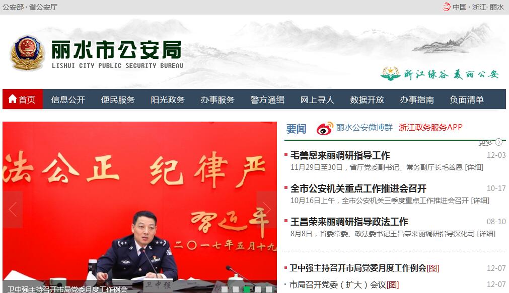 丽水市公安局主要职能有:(一)贯彻执行党和国家有关公安工作的方针、政策、法律、法规和市委、市政府、省公安厅的指示,部署、指导、检查、监督全市公安工作。(二)掌握影响稳定、危害国内安全和社会治安的情况,分析研究新形势下出现的新情况、新问题,提出对策措施。(三)组织、指导并直接参与对危害国内安全案件的侦察,对境内外敌对势力、反动社团、黑社会组织进行侦控和基础调查工作。(四)主管和指导侦查工作,组织特别重大案件和跨县、市重大案件的侦破工作。(五)维护全市社会治安秩序,依法查处危害社会治安秩序行为,依法管理户籍、居民身份证、枪支弹药、危险物品和特种行业,组织、协调和查处重特大治安事件和突发性事件的处置工作,管理集会、游行、示威活动。(六)主管全市出入境管理工作,依法组织指导中国公民出入境和外国人在中国境内居留、旅行的有关管理工作。(七)指导、管理和监督全市公安机关维护道路交通安全、交通秩序以及机动车辆、驾驶员管理工作。(八)负责全市消防管理工作,依法进行消防监督。(九)负责指导并依法监督全市机关、团体、企事业单位和重点工程的治安保卫工作以及群众性治安保卫组织的治安防范工作。(十)主管全市计算机信息系统安全保卫工作,实施对公共信息网络的安全监察。(十一)指导、监督全市公安机关依法承担的执行刑罚和各县(市)看守所、治安拘留所的管理工作,管理市看守所、治安拘留所、强制戒毒所。(十二)承办市政府劳动教养委员会的日常工作。(十三)组织实施对来丽水的党和国家领导人、重要外宾以及重大活动、重要会议的安全警卫工作。(十四)组织、指导禁毒缉毒工作,指导并直接参与涉毒案件的侦察。(十五)组织实施公安科学技术工作,规划公安信息技术、刑事技术和行动技术建设,负责全市技术防范工作和社会公共安全产品的管理。(十六)管理和落实公安机关装备、被装和经费等警务保障工作。(十七)协管消防支队建设。(十八)协同县(市)党委管理县(市)公安机关领导干部;规划、指导和实施全市公安队伍建设;指导和监督全市公安机关执法活动。(十九)制定公安队伍监督管理规章制度,分析队伍状况,组织指导公安机关督察工作;按规定权限实施对干部的监督;查处或督办公安队伍重大违纪案件。(二十)领导并指导林业等公安机构的业务工作。(二十一)承办市委、市政府和上级公安机关交办的其他事项。