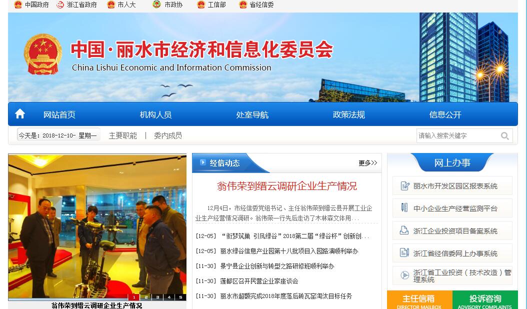 丽水市经济和信息化委员会(市中小企业局)主要职责:(一)贯彻执行国家、省、市有关经济运行调节和信息化工作的方针政策和法律、法规;起草我市经济和信息化方面的规范性文件;组织编制、实施工业和信息化的发展战略、中长期规划和年度计划;组织制定工业和信息化专项规划和行业规范,指导、监督、检查执行情况。(二)监测分析全市经济运行态势,进行预测预警、信息引导,调节经济日常运行;拟订并组织实施近期经济运行调控目标、政策和措施,监测调控政策执行效果,协调解决经济运行中的重大问题并提出建议;负责工业、信息化应急管理和产业安全有关工作。(三)负责推进工业产业结构战略性调整,拟订相关的产业政策和发展规划,推进信息化和工业化融合发展,优化全市工业、信息产业布局,推动软件业、信息服务业和新兴产业的发展,指导产业转型升级,制定并组织实施产业结构调整实施方案,牵头提出工业和信息化发展专项资金使用的重点领域和方向;按照分工,承担全市工业园区、信息产业园区的相关工作,协调推进工业园区、块状经济和产业集群发展,组织培育区域品牌。(四)负责全市企业技术改造投资管理工作,拟订产业投资规模和结构调控目标、政策及措施;申报、核准、备案企业技术改造(含利用外资)项目;负责国家、省、市财政有关专项资金项目的申报、组织实施和督查工作;承担技改投资项目进口和国产相关设备抵免税审核确认工作;监督企业技术改造项目招投标活动;参与制定投资体制改革方案和重大工业建设项目投资的有关工作。(五)指导企业技术创新和技术进步,提出相关的政策,组织实施国家、省、市有关重大技术攻关项目,推进企业技术创新体系和能力建设,培育企业技术中心,负责组织实施重大装备国产化和重大技术装备、应对技术壁垒专项,推动企业技术引进、新产品开发和高新技术产业化;组织协调相关的产学研合作创新,参与指导企业知识产权工作。(六)负责建立煤电油运等要素保障机制;监测、分析煤炭的运行态势和市场状况,拟订并组织实施有关保障政策和措施,负责煤炭经营企业资质和煤炭运行秩序的管理,负责煤炭应急储备的管理;负责制定成品油生产、供应、储备年度计划并组织考核和检查,负责协调成品油市场供应调度,组织推广清洁油品的生产和使用;组织重点物资的紧急调运和综合运输协调工作,负责协调全市春运工作。(七)负责全市电力运行管理,协调电力供需、电网运行中的有关问题;负责全市电力电量综合平衡和电力年度计划编制及管理,监督指导电力调度;负责电力需求侧管理和有序用电,指导节约用电,牵头处置大面积停电事故;按照权限和分工,审核资源综合利用和新能源发电项目;负责热电联产、集中供热的改造建设;指导新农村电气化建设;参与全市电力重大建设项目的相关工作,参与电力价格制定。(八)负责全市节能降耗和资源综合利用的综合协调工作,指导工业循环经济、清洁生产、新能源推广应用工作,拟订相关的专项规划和政策措施,组织协调项目示范;负责全市资源综合利用认定和监督管理;负责对高耗能固定资产投资项目的节能审查,核准节能产品认定;指导新型墙体材料改革和散装水泥推广工作;负责能源利用监察(监测)和执法工作。(九)牵头协调指导工业和信息化企业发展生产性服务业工作,研究提出相关政策措施,推进制造业和服务业融合发展,推进生产性服务业功能区和公共服务平台建设;指导企业积极发展科技服务业、现代物流业、国际贸易、文化创意产业和售后服务业等,指导总部经济和楼宇经济发展。(十)指导工业和信息化企业市场拓展和合作交流,协调和指导工业和信息化引进内资工作;开展工业、信息化的对外合作交流;参与开展区域产业协作。(十一)负责工业和信息化行业管理工作,提出工业和信息化行业规划和相关政策,协调工业和信息化行业发展中的重大问题;负责市本级政府投资信息化项目的审批和检查;承担产业信息发布和相关行业准入许可事项;推进工业和信息化行业淘汰落后生产能力工作;管理和指导相关行业协会工作;负责市级医药储备管理工作;协调全市茧丝绸工作。(十二)指导各种经济成分的工业信息化企业,规范企业行为规则;制定并组织实施培育发展大企业大集团和行业龙头企业的政策、措施;组织协调企业治乱减负工作;指导企业管理创新和现代企业制度建设;组织实施企业经营管理人员素质提升工程,推进企业管理咨询资质认定。(十三)统筹推进全市信息化工作,组织制定并实施相关的政策,协调全市信息化建设中的重大问题;负责信息化建设的市场监管和服务能力建设;指导协调电子政务发展,推动电子商务和经济社会各领域的信息化应用。(十四)按照规定权限,负责信息安全管理,协调信息安全和信息安全保障体系建设,指导监督政府部门、重点行业重要信息系统与基础信息网络开展安全保障工作,监督管理网络安全技术的应用(除计算机病毒防治外),协调处理网络与信息安全重大事件。(十五)按照规定权限,负责全市信息网络设施建设,制定相关的规划并协调管理,组织推进通信网、广播电视网和计算机网等“多网”融合发展;指导推进全市政务和社会公共服务信息资源开发利用工作;负责全市信息产业园的规划布局和建设指导,组织推进电子信息产
