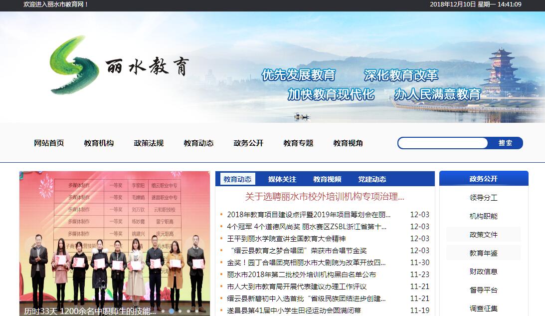 丽水市教育局主要职责:( 一)贯彻执行党和国家的教育方针、政策和有关教育的法律、法规,研究全市教育改革与发展的重大问题,指导、协调各县(市、区)、市直有关部门的教育工作,负责局下属单位(学校)党的思想建设、领导班子建设和思想政治工作;负责教育方针、政策的宣传和舆论监督工作;协助市委、市府处理在丽大中专学校中的突发事件,维护大中专学校的稳定。(二)研究制定并组织实施全市教育事业发展规划和年度教育工作计划;拟定全市教育改革和实施素质教育的政策以及教育发展的重点、结构、速度和步骤的意见,指导、协调并检查实施工作。(三)统筹管理全市基础教育(含特殊教育、幼儿教育)、职业技术教育、成人教育、社会力量举办的高中段及其以下教育、成人高等教育自学考试和继续教育等工作;管理和指导各级各类中小学在职教师和教育行政干部的学习、培训工作;审核普通高中、职业高中、中等职业技术学校的设置、更名、撤销与调整;指导高等、中等专业学校教育教学改革和专业设置。(四)规划并指导全市中小学、幼儿园的思想政治工作、品德教育工作、体育、卫生、艺术教育和国防教育工作;指导全市中小学校少先队、共青团工作;指导全市校办产业、勤工俭学和高校后勤社会化工作;指导学校电化教育、图书、教学仪器和实验设备配备工作。(五)管理全市高中段学历教育及其招生考试工作,会同有关部门制定高中段学历教育的招生计划并组织实施,负责高、中等学历教育的学籍管理工作;指导高中段教育及其以下各类教育的教育教学改革;组织对普及九年义务教育、扫除青壮年文盲、发展高中段教育工作的督导与评估;组织教育科学研究和教学研究,编写必要的补充教材,进行教学质量评估;承担市政府教育督导室具体工作。(六)主管全市的教师工作,组织实施教师资格制度;组织指导中小学教师专业技术职务的评审和聘任工作;拟定教师管理的有关政策,统筹规划并指导学校教师和管理人员的队伍建设工作;负责师范类大中专院校毕业生的就业指导和派遣工作;负责市本级教育系统教职工和全市教师跨系统跨地区调动的审核;指导教育系统社团组织的工作。(七)统筹管理本部门教育经费;参与拟定筹措教育经费、教育拨款、教育基建投资的方针、政策;监测全市教育经费的筹措和使用情况;会同有关部门制定普通高中和职业高中的收费标准;指导教育系统的审计工作;负责全市教育基本信息的统计、分析和发布;管理下属单位(学校)的基建、财务、固定资产。 (八)贯彻国家语言文字工作的方针、政策,编制语言文字工作中长期规划,协助协调、监督和检查全市的语言文字工作;指导推广普通话和普通话水平测试工作。 (九)承办、市政府交办的其他事项。
