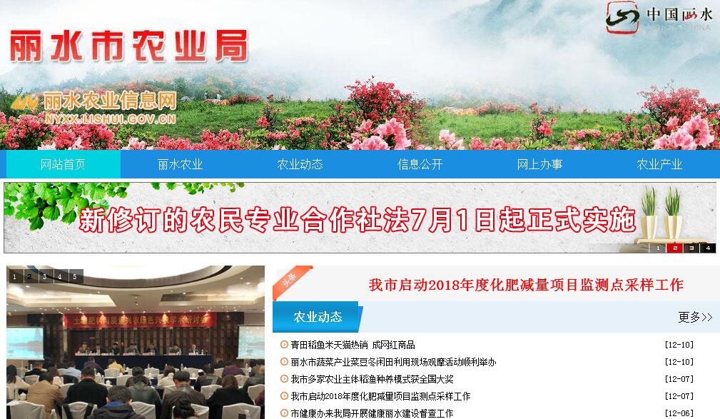 丽水市农业局主要职责:(一)贯彻落实有关农业、农村经济的法律法规和方针政策,研究拟订农业和农村经济发展战略、中长期发展规划,经批准后组织实施。参与涉农的财税、价格、金融保险、进出口等政策制定工作。(二)负责完善农村经营管理体制。提出深化农村经济体制改革和稳定、完善农村基本经营制度的政策建议,指导农村土地承包、耕地使用权流转和承包纠纷仲裁管理。指导监督减轻农民负担工作,指导监督农村集体资产管理、财务管理和审计工作。指导扶持农业社会化服务体系、农村经济合作组织、农民专业合作社、家庭农场和农产品行业协会的建设与发展。(三)指导粮油、食用菌、茶叶、畜禽、蔬菜、水果、中药材等主要农产品生产,指导协调农业生产的安全监督管理工作,组织落实促进农产品生产发展的相关政策措施,指导农业产业结构调整、农业资源配置和农产品品质的改善。指导国有农场建设管理工作。参与农业综合开发和新农村建设工作。(四)提出扶持农业农村发展的财政政策和项目建议,拟订农业产业化发展规划与政策并组织实施。拟订全市“菜篮子”有关政策,指导农产品加工、流通和营销管理工作,会同有关部门指导农产品流通体制改革。拟订大宗农产品市场体系建设与发展规划,指导高效生态农业、设施农业、休闲观光农业和外向型农业的发展,指导农业展示展销活动,培育、保护和发展农产品品牌。(五)负责食用农产品从种植养殖环节进入批发、零售市场或生产加工企业前的质量安全监督管理,负责畜禽屠宰环节和生鲜乳收购环节质量安全监督管理。负责农产品质量安全监测。制定农业产业生产技术规范并组织实施,会同有关部门指导农业标准化生产。指导农业检验检测体系建设和机构考核。组织实施符合安全标准的认证农产品的监督管理,组织拟定农产品禁止生产区域。(六)负责农业法制宣传教育,农业规范性文件制定、审核和备案。负责全市农业行政执法监督管理、组织协调和指导,负责兽药、饲料、饲料添加剂和职责范围内的农药、肥料等其他农业投入品质量的监督管理。负责农业行政审批服务事项。依法组织查处农业违法行为。指导农业机械化发展和农机安全监理。(七)负责农业科研、教育、技术推广及其队伍建设的协调管理工作,实施科教兴农战略。参与农业重大科研和技术推广项目的遴选与实施。负责农业技术推广体系建设、农业技术成果的管理工作,负责农业科技成果推广的日常管理工作。指导农业教育和农业职业技能开发工作,指导实施农村实用技术培训工作,会同有关主管部门依法实施农业专业技术资格评审管理。指导农业技术推广基金会的管理工作。(八)负责动物疫病防控,指导农作物生物灾害的预防、控制和处置工作。会同有关部门拟订动植物防疫检疫政策并指导实施,指导动植物防疫和检疫体系建设。组织对动植物疫情疫病的监测预警,组织、监督动植物防疫检疫以及动物卫生监督执法工作。指导开展农业外来有害生物的监测预警和防控工作。(九)负责农业的行业管理。参与研究拟订农业基础设施建设规划,指导农业新品种、新技术、新机具试验示范和推广工作,指导农用地及农业生物物种资源的保护管理工作。承担耕地、基本农田和标准农田质量管理,指导农村可再生能源综合开发与利用,指导农业生态环境保护、生态循环农业建设。指导农业面源污染治理、农业废弃物资源化综合利用、农业农村节能减排有关工作。指导农业防灾救灾工作,组织种子等应急救灾物资储备和调拨。(十)负责农业信息工作,监测分析农业和农村经济运行,开展相关农业统计工作。指导农业信息化推广应用工作,发布农业和农村经济信息。(十一)负责全市农业外事、外经工作,组织开展农业贸易促进和国际间农业经济、技术交流与合作。参与研究提出外向型农业发展政策建议。(十二)承办市政府交办的其它事项。