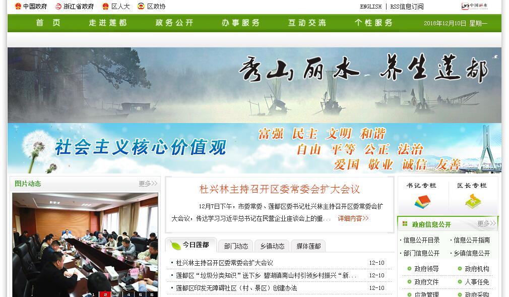 莲都区历史悠久,始建于隋开皇九年(公元589年),时称括苍县,属处州府治,唐大历十四年(公元779年)改为丽水县,1986年撤县设立县级丽水市,2000年7月撤市设立莲都区。莲都区地处浙西南腹地、瓯江中游,是丽水市唯一的市辖区。全区总面积1502平方公里,辖5个乡、4个镇、6个街道(其中南明山街道委托市开发区管理),少数民族人口绝对数居全省第二位、全市第一位。其主要特点可概括为“一址、一堰、四乡”。一址,即一批革命旧址。莲都人民具有光荣的革命传统,周恩来、粟裕、刘英、陈嘉庚等曾在此留下足迹,至今仍保留着“红军洞”、新四军驻丽办事处、中共浙江省委旧址等一大批革命旧址。1949年5月10日,丽水(莲都)解放。1988年5月,浙江省人民政府批准丽水(莲都)为革命老根据地县。一堰,即千年通济堰。国家级文物保护单位通济堰,位于碧湖镇堰头村,建于南朝萧梁天监年间(502-519),迄今已有1500余年历史,是与都江堰、它山堰、郑国渠、灵渠齐名的中国古代五大水利工程之一、浙江省最古老的水利建筑,囊括了世界最早的拱形大坝、世界最早的石函立交桥、世界最早的堰规石碑“三个世界之最”。源远流长、博大精深的“千年古堰”,孕育了“千年古樟群、千年古村落、千年庙会、千年古窑址、千年古碑林”等古老而灿烂的处州民俗文化和农耕文化。四乡,即休闲之乡、摄影之乡、油画之乡、水果之乡。——休闲之乡。莲都山水隽秀、风光旖旎,八百里瓯江最瑰丽河段穿流其间,为国家级生态示范区、省级生态区。境内耕地17万亩,林地180万亩,水域7万亩,森林覆盖率80%,生物资源1000多种,有大小景点232处,市区拥有“一湖(南明湖)、三山(白云山、万象山、南明山)、三岛(古城岛、中岸岛、琵琶岛)、十景(古堰画乡、九龙湿地、石牛温泉、四都健身、一吻千年、浪漫白岩、名人南明、白云森林、处州府城、括苍水城)”。2010年9月,全市首个省级旅游度假区——丽水瓯江风情旅游度假区获省政府批准。——摄影之乡。1999年,莲都被中国摄影家协会授予全国第一个“中国摄影之乡”。中国摄影博物馆坐落于莲都。目前,市区有国家级摄影家50名,省级摄影家150多名,基层摄影组织20多个,在全国绝无仅有。瓯江帆影、渔舟唱晚、畲家风情等知名摄影点为中外摄影家所钟情。莲都已成功举办了10多次国际、国内摄影展。——油画之乡。莲都是丽水巴比松油画发祥地,国内知名油画创作、生产和销售基地。由通济堰、瓯江风光、巴比松油画等元素整合而成的“古堰画乡”景区,已成为国内知名的美术写生基地、创作基地、行画生产基地,被评为丽水十大名片之一,荣获“浙江省文化产业建设示范点”称号,现有160多家院校在此建立了写生基地,有44家油画企业进驻景区。——水果之乡。莲都水果具有较高的营养价值,瓯柑、白枇杷、早中熟桃、葡萄等优质水果在省内外有较大的影响力。全区有水果面积20多万亩,占全市近三分之一。全区年均水果产量16多万吨,占全市近二分之一。先后荣获“中国水果百强县”、“中国椪柑之乡”、“浙江省九坑桃之乡”、“全国第二批无公害农产品(水果)生产示范基地县”、“浙江省蔬菜、水果、食用菌产业强县”。近年来,莲都区委、区政府坚持思想第一先导、发展第一要务、维稳第一责任、党建第一保障,着力打造实力莲都、效率莲都、养生莲都,致力于建设丽水市先进制造业基地、浙江绿色农产品基地、长三角休闲旅游基地。十里荷香一江明秀,千顷沃野万象呈祥。莲都,欢迎您!