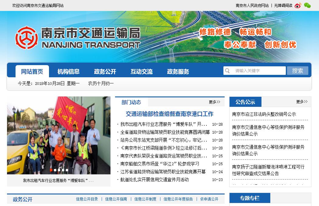 南京市交通运输局主要职责:(一)贯彻执行国家和省有关交通运输的方针政策、法律法规,组织起草全市交通运输法规、规章草案,拟订全市交通运输行业发展战略、规划并组织实施,指导全市交通运输行业体制改革工作。(二)组织编制全市综合交通运输体系规划及城乡道路(隧桥)、航道、公交场站、地方铁路、民用航空等基础设施专项规划及年度计划,城乡客运、交通物流发展等行业规划。会同有关部门编制交通运输固定资产投资计划。负责交通运输行业统计和信息发布工作。(三)组织协调和管理城乡交通基础设施建设。负责全市公路、城市道路(隧桥)、社会公共停车场(与交通设施配套)、港口、航道建设和维护的行业管理。负责公交场站的建设,指导城市轨道交通建设。负责全市港口及港口岸线的统一管理工作,承担南京区域性航运物流中心建设及海港枢纽经济区发展协调推进职责。(四)承担全市城乡道路、水路运输市场监管责任。负责城乡客运管理及交通物流管理工作。(五)承担全市交通运输综合行政执法工作。负责本市除长江以外通航水域的水上安全监督、内河救助打捞工作。负责船舶及船用产品检验、渔船检验监督管理和防止船舶污染内河水域管理工作。(六)参与拟订全市交通运输行业投融资政策和规费征收政策并监督实施,提出交通运输相关财政、用地、价格等政策建议。协调并参与交通运输建设资金筹集,负责交通运输专项资金的使用管理,制定交通运输专项资金安排计划、编制资金预算。指导交通运输行业内部审计工作。(七)负责全市交通运输科技与信息化工作。指导协调交通运输行业信息化项目的建设与管理。指导并监督交通运输行业质量、技术、环保和节能减排工作。(八)负责全市交通运输行业安全生产的监督管理。承担并指导全市交通运输行业应急处置工作。组织实施重点物资运输和紧急运输。组织协调“春运”及假日运输等重大交通保障工作。(九)负责协调全市铁路、民航相关工作。参与协调配合铁路建设开发工作,履行地方铁路管理事权。依法对民用机场实施监督管理。承办市国防动员委员会交通战备办公室工作。(十)指导全市交通运输行业队伍建设和精神文明建设。指导全市交通运输行业对外交流合作工作。(十一)完成市委、市政府交办的其他任务。