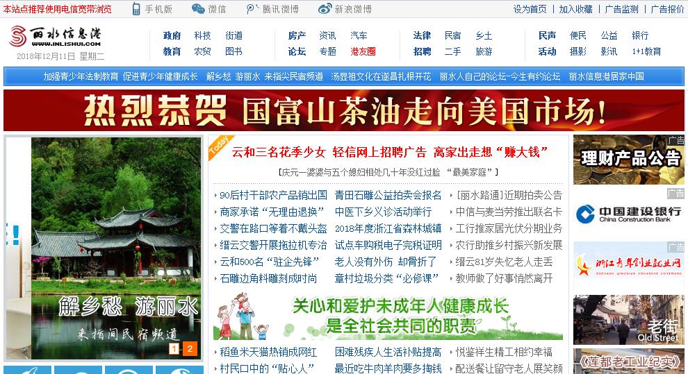 丽水信息港是由丽水市正阳网络技术有限公司投资建设、运营维护的公共多媒体综合信息服务网络。丽水信息港于1997年开通运营,在各级领导部门的重视和大力支持下,逐步发展成为浙西南地区最大的公众信息平台。丽水信息港依托强大的电信资源和广泛联盟,结合自身的技术和网络优势,与丽水市政府及相关部门、各企事业单位合作,开设居家中国、丽水车网、青年就业网、商家大全、1+1教育、旅游、时尚、法律咨询、街道社区等三十多个栏目,资讯范围广泛、服务全面可靠,有力地支持了政府上网工程、企业上网工程、家庭上网工程等信息化建设项目的开展。丽水信息港纳入百姓关注热点,贴近百姓生活,本着双赢、发展的原则,与本地商家、企业合作,建立稳固的信息源头,给广大网民带去实用而新鲜的商品信息、生活资讯,让广大市民“足不出户,人不下网”就能了解到最新的消费信息和前沿的生活时尚,体验网上购物、咨询和娱乐的最IN感觉。同时,丽水信息港作为公众媒体,也成为商家、企业面向大众的窗口,沟通外界的桥梁。企业建站、广告宣传、资讯发布、媒介互动,丽水信息港将充分体现新媒体的独特优势,让客户的每一分投入都尽显价值。全心全E为您服务是我们的口号——丽水信息港竭诚为各界用户提供最周到、最完善的网上服务,与广大网民共同打造轻松、丰富、品位、精致的网络时尚生活。