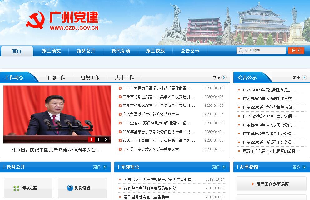 广州党建网由中共广州市委组织部主办。中共广州市委组织部主要职责: (一)贯彻执行党的组织工作的路线、方针、政策和市委有关组织工作的决定,拟订全市组织、干部工作的法规及党员、干部管理的规划,并组织实施。(二)研究和指导党组织建设,探索和指导各级基层党组织建设;研究和指导各类经济组织、社会组织中党组织的设置和活动方式;研究和提出党内生活制度建设的意见;协调和指导党员教育工作,主管党员的管理和发展工作;编纂中共广州市组织史。(三)贯彻党的干部路线和方针、政策,负责考察列入市委管理的领导班子和领导干部,提出调整、配备的意见和建议;办理市管干部的任免、工资、待遇、退(离)休等审批手续;指导区、局级单位建立、健全后备干部工作制度;负责市管干部和市管后备干部的信息管理工作;承办相关干部的调配、交流、安置事宜。(四)对全市干部队伍建设进行宏观指导;综合管理培养选拔年轻干部、女干部、党外干部工作;负责全市党的机关,人大、政协机关,群众团体和民主党派机关等参照国家公务员制度管理工作。(五)宏观指导党的组织制度和干部人事制度的改革;制订或参与制订全市组织、干部、人事工作的重要政策、制度。(六)对市管干部和全市干部选拔任用工作进行监督;审理干部的党籍、党龄问题和市管干部参加革命工作时间及其他历史遗留问题。(七)制订干部教育培训工作的政策、规划;协调、指导、检查全市的干部教育培训工作,组织市管干部及其后备干部和一定层次的中青年干部的培训。(八)检查、指导、综合、协调知识分子工作;参与制订知识分子政策并检查落实情况;选拔、管理市管优秀专家;指导专业技术拔尖人才的选拔、管理工作。(九)检查、督促组织和干部工作,向市委反映重要情况、提出建议;对全市组织工作进行调查研究,总结推广先进经验,解决存在问题;指导基层组织部门的工作和自身建设。(十)宏观指导退(离)休干部工作;参与制订退(离)休干部工作的政策。(十一)承办市委和上级组织部门交办的其他事项。