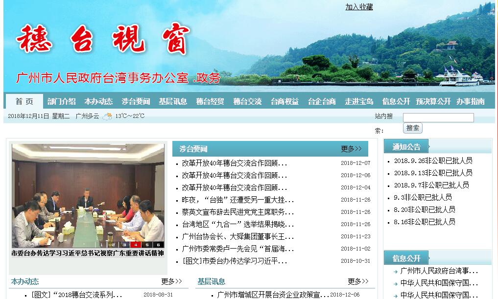 广州市人民政府台湾事务办公室负责对全市对台工作履行组织、指导、管理、协调职能。其主要职责:(一)贯彻执行中央对台工作方针政策;研究制定我市对台工作的实施办法和工作计划,并组织实施。(二)组织、指导、管理、协调全市对台工作;并对各级各部门贯彻执行党的对台工作方针、政策情况进行检查。(三)调查研究台湾形势及两岸关系发展动向,提出对策意见和建议。(四)统筹协调和指导我市对台经济工作;协助管理台资企业;指导市台资企业协会工作。(五)统筹协调和指导我市对台文化、教育、科技、卫生、体育以及其他各领域的交流与合作;负责我市赴台交流、考察、讲学项目和台湾团体或人士来穗交流、考察、讲学等有关项目的审核、报批工作。(六)负责对台宣传、涉台新闻报道和涉台教育工作;协调台湾记者来穗采访。(七)按照上级台办的部署和授权,负责与台湾有关社会团体及各界人士的联络及沟通;指导各区、县级市和市直有关单位及团体与台湾重点人士的联络工作和重要涉台活动。(八)保障台湾同胞的合法权益;指导、协调处理涉台重要事件和突发事件及穗台两地人员交往中的各类事务。(九)指导开展台属工作。(十)负责我市涉台事务的新闻发言。(十一)负责市委对台工作领导小组的日常工作。(十二)承办市委、市政府和上级部门交办的其他事项。