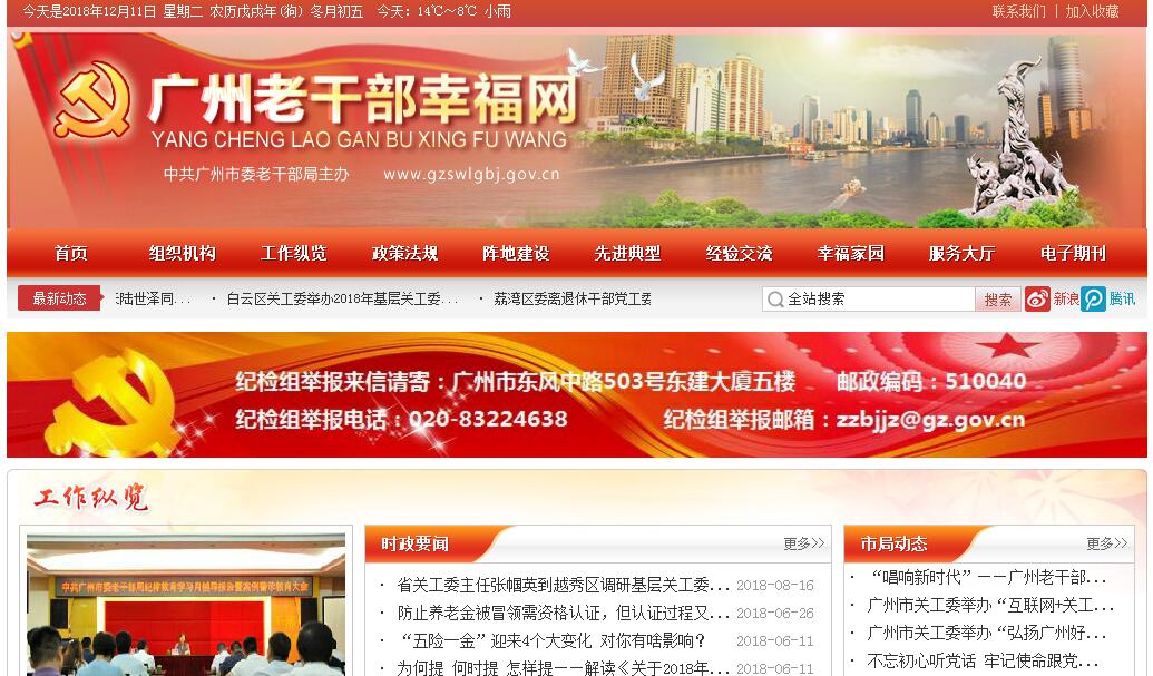 中共广州市委老干部局是主管全市老干部工作的职能部门。主要职能是贯彻党和国家有关离(退)休干部的方针政策,落实离休干部和市副局级以上退休干部的政治、生活待遇并发挥好老干部作用,对市属各单位离休干部和市副局级以上退休干部管理工作进行检查、督促。其主要职责:一、贯彻执行党中央、国务院和省、市有关老干部工作的方针、政策,制定或参与制订我市老干部工作的政策、规定。二、建立健全离休干部“三项保障机制”。三、检查、督促落实离休干部和市副局级以上退休干部的政治待遇、生活待遇并发挥老干部的作用。四、组织、协调老干部参加重大活动;指导加强全市老干部党支部建设;指导全市老干部活动场所、老干部(老年)大学的管理和服务工作;动员、组织全市离退休干部积极加入到关心下一代工作行列,配合有关职能部门做好关心教育下一代的工作。五、负责外地来穗参观交流的老干部的接待工作;协助有关部门做好老干部的医疗保健工作;承办离休干部易地安置工作;指导有关单位做好老干部的丧事办理工作。六、负责市直属关闭、破产企业离休干部的管理服务工作。七、指导全市老干部工作机构、队伍的自身建设,负责老干部信访、信息、统计工作。八、承办市委和上级老干部工作交办的其它事项。