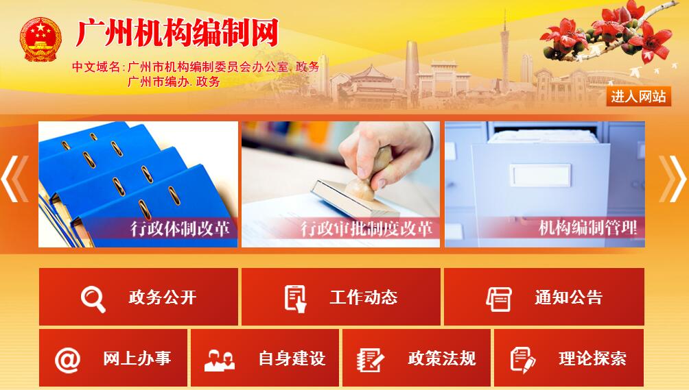 | 网站简介: 广州市机构编制委员会(以下简称市编委)是市委、市政府负责全市行政管理体制改革、机构改革和机构设置、编制管理的决策、协调、监督机构。其主要职责:(一)贯彻执行中央、省和市有关行政管理体制改革、机构改革、机构编制管理的方针、政策和法律法规;研究制定我市机构编制管理政策、规章、制度和规定,并监督执行。(二)审议或审批本市各级行政管理体制和机构改革的总体方案。(三)统一管理全市各级党委、人大、政府、政协、法院、检察院、民主党派和人民团体机关(以下简称党政群机关)及事业单位的机构编制工作。(四)研究制订我市党政群机关及事业单位管理体制和机构改革总体方案,并组织实施。(五)负责调整市直党政机关之间的职责分工和协调市、区、县级市的事权划分。(六)管理全市各级行政编制总额的分配和调整,研究制定各类编制标准。(七)承办市委、市政府和上级机构编制管理机关交办的其他工作。 |