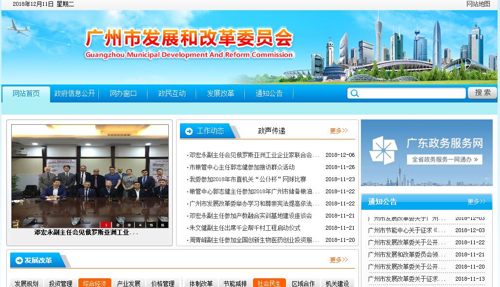 广州市发展和改革委员会主要职责:一、贯彻执行国家和省有关国民经济和社会发展的方针政策和法律法规,起草有关地方性法规、规章草案,拟订并组织实施全市国民经济和社会发展战略、中长期规划和年度计划,研究提出城市总体发展战略,配合省政府编制和协调实施主体功能区规划并进行监测评估,衔接、平衡城市总体规划、土地利用总体规划及各专项规划和区域规划,统筹协调经济社会发展,研究提出总量平衡、发展速度和结构调整的目标、政策,提出综合运用各种经济手段和政策的建议;受市政府委托向市人大报告国民经济和社会发展计划。二、负责监测分析全市国民经济和社会发展形势,承担预测预警和信息引导的责任,研究经济运行中的重大问题并提出调控政策建议。三、负责汇总分析全市财政、金融等方面的情况,参与拟订财政、金融和土地等政策,牵头拟订产业用地指南、标准,负责市轨道交通建设资金的筹措、计划安排和监督管理,提出投融资政策并组织实施,统筹协调全市社会信用体系建设工作。四、承担指导推进和综合协调全市经济体制改革的责任,研究经济体制改革和对外开放的重大问题,组织拟订综合性经济体制改革方案,协调拟订和落实有关专项经济体制改革方案,指导和推进经济体制改革试点和改革试验区工作,组织、协调行业协会、商会的改革发展。五、承担规划全市重大建设项目和生产力布局的责任;拟订全社会固定资产投资总规模和投资结构的调控目标、政策及措施,衔接平衡需要市政府安排投资和涉及重大建设项目的专项规划;组织拟订全社会固定资产投资、政府投资和重点建设项目的中长期规划和年度计划;按规定权限和程序审批、核准、审核、备案固定资产投资项目;安排市级财政性投资项目和市本级基本建设统筹资金及其他有关市本级财政性基本建设资金,组织编制下达市级财政性投资年度计划;负责本市政府投资项目建议书、可行性研究报告的审批审查、初步设计概算的审批;发布投资信息,研究制订引导民间投资的政策措施;研究提出利用外资和境外投资的战略、规划、总量平衡和结构优化的目标和政策,负责管理全市外债;组织开展重大建设项目稽察,综合协调推进重大建设项目建设;按规定权限指导和协调招投标工作;指导、监督公共资源交易工作。六、统筹协调全市产业发展,推进经济结构战略性调整和升级;组织拟订产业发展的战略、总体规划、重点产业规划和综合性产业政策,负责协调产业发展的重大问题并衔接平衡相关发展规划和重大政策,协调推进产业重大建设项目建设,统筹现代产业体系建设;牵头推进城乡产业布局一体化;协调农业和农村经济发展的重大问题;协调推进制造业发展,统筹总体布局;组织拟订自主创新能力建设、高技术产业发展、产业技术进步的战略、规划和政策,推进高新技术产业化;组织培育和发展战略性新兴产业;统筹服务业发展,组织拟订和实施服务业发展战略、规划和政策,推进现代服务业中心建设。七、牵头协调全市《珠江三角洲地区改革发展规划纲要(2008-2020年)》组织实施工作,组织拟订区域协调发展、区域合作发展的战略、规划和政策,协调城市功能区发展;承担市对口支援新疆及帮扶我省贫困地区的有关工作。八、承担全市重要商品总量平衡和宏观调节的责任,提出扩大消费和促进贸易发展的政策措施,组织编制重要农产品、工业品和原材料进出口计划并监督执行,拟订重要物资储备计划,指导、监督重要商品储备工作。九、负责全市社会发展与国民经济发展的衔接平衡,组织拟订人口和社会发展战略、总体规划和年度计划,统筹推进城乡区域协调发展,统筹社会事业建设,协调社会事业发展和改革中的重大问题及政策,牵头组织实施人口调控,研究提出促进就业、调整收入分配、完善社会保障与经济协调发展的政策建议。十、负责组织拟订并协调实施全市基础设施发展战略、规划,研究提出相关政策建议,衔接平衡综合交通运输发展规划,承担轨道交通规划发展工作职责。十一、推进可持续发展战略,承担全市节能减排和应对气候变化的综合协调工作,组织拟订相关规划和政策,牵头组织实施低碳城市建设。十二、统筹全市能源发展,负责拟订并组织实施能源发展战略、规划和政策,组织落实节能减排、监察工作,衔接能源总量平衡,保障能源安全,协调能源产业的发展,开展能源对外合作。十三、承担全市粮食调控职责,牵头组织实施粮食流通市场监管,负责粮食监测预警和应急管理,推进粮食市场体系和粮食流通基础设施建设,统筹储备粮管理和军粮供应管理;参与粮食风险基金的运作和监督。十四、提出年度价格总水平调控目标及价格调控措施并组织实施,管理国家、省、市列名管理的商品和服务价格,监管实行市场调节价的商品和服务价格,承担行政事业性收费管理工作,负责相关价格公共服务工作,负责全市价格监督检查工作。十五、负责组织编制全市国民经济动员规划、计划,组织实施国民经济动员有关工作。十六、承办市委、市政府交办的其他事项。