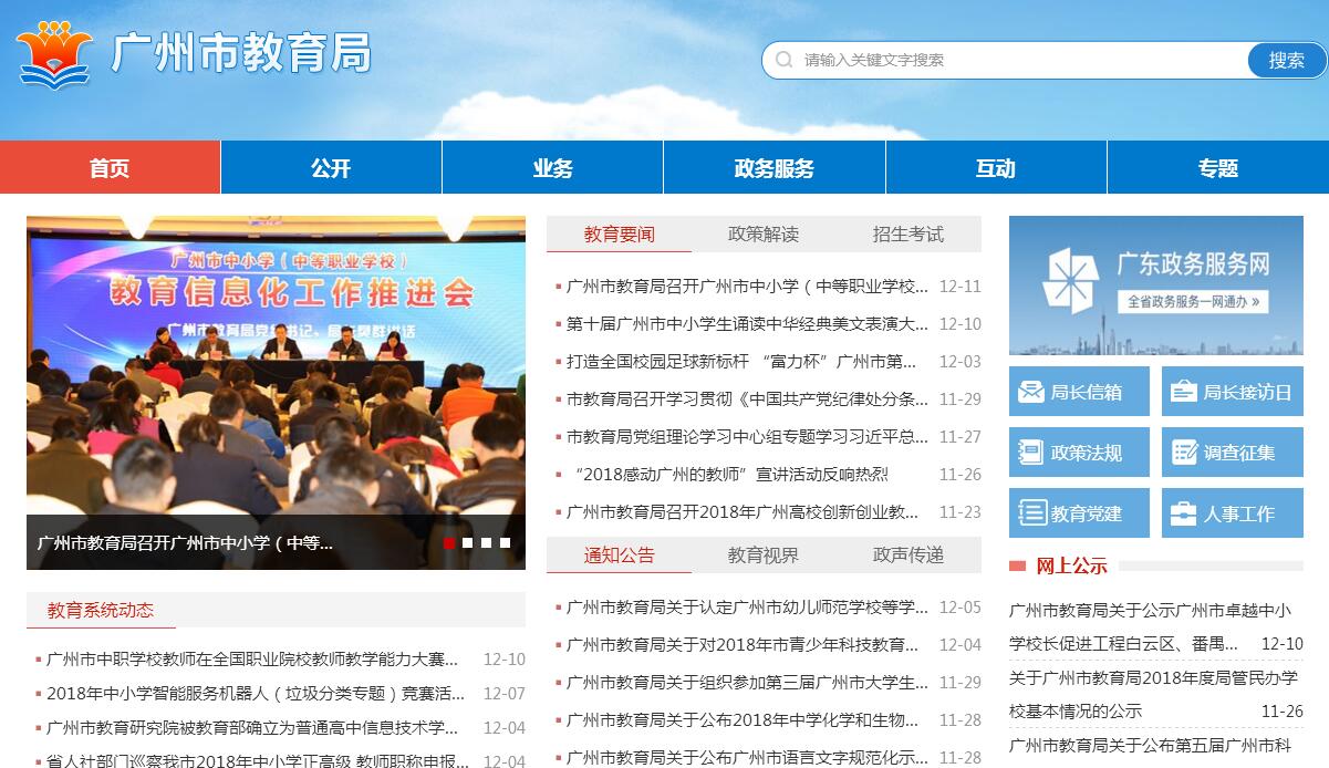 广州市教育局主要职责:(一)贯彻执行国家和省、市有关教育工作的法律、法规和方针政策,起草有关地方性法规、规章草案,拟订有关政策措施并组织实施。(二)组织拟订教育改革与发展规划和年度计划,提出教育体制改革的政策并组织实施,负责教育改革与发展的战略研究,会同有关部门规划、指导各级各类学校的布局结构调整,负责教育事业相关数据的统计、分析和发布。(三)负责市级教育经费的统筹管理;检查区、县级市教育财政拨款的投入、执行和使用情况;指导学校的基本建设和财务管理工作;指导和监督市教育系统的内部审计工作,对局属单位的经济活动进行审计监督。(四)负责学前教育、基础教育(含特殊教育)、职业教育、成人教育和高等教育事业与发展的统筹管理工作;指导学校开展教育教学改革和办学体制、学校内部管理体制改革;指导学校进行专业建设、课程建设和教材建设;负责推进义务教育均衡发展和促进教育公平;指导本市成人文化教育、社区教育、职工教育和农民文化技术教育工作;指导本市教育招生考试工作。(五)规划、指导和协调教育系统的科研、科普工作;组织、指导教研机构和学校开展教育教学研究;组织、指导市属高等学校的重点学科及科研创新平台建设,指导产学研结合和相关科技产业工作;指导学校开展奖学、助学和勤工俭学工作;指导学校后勤工作和校办产业工作。(六)负责督政、督学工作,承担教育执法的相关工作,对下级人民政府的教育工作以及教育行政部门和学校的工作进行指导、检查、评估和监督,对教育质量和办学水平进行检查、监测。(七)规划、协调教育信息化工作,指导学校电化教育、教育技术装备、实验室和图书馆建设,组织指导教材和教学用书及资料的选用工作,负责教育系统政府采购的监管工作。(八)指导学校的思想政治教育工作、德育工作、团队工作、体育卫生与艺术教育、国防教育和宣传工作;组织、指导本市普通高等学校、高中阶段学校(含普通高中、中等职业学校、技工学校、职业高中)学生军事训练工作;指导学校的安全、稳定和保卫工作。(九)参与拟订有关高校毕业生就业创业政策和计划,指导高校毕业生离校前和已办理暂缓就业手续的高校毕业生的就业指导和服务工作。(十)负责本市教师工作,组织实施教师资格制度,规划、指导各级各类学校校长、教师、教育行政干部和专家队伍建设工作,规划、指导教师的培养培训工作,推进学校人事制度改革。(十一)统筹规划、综合协调和管理各级各类民办教育,规范民办教育办学秩序,促进民办教育事业健康发展。(十二)指导、管理教育系统与国际和港、澳、台地区的教育交流与合作办学;指导推广普通话和文字规范工作。(十三)赋予市教育局党委负责本系统的党建、统战和干部管理工作职责。(十四)承办市委、市政府和上级教育部门交办的其他事项。