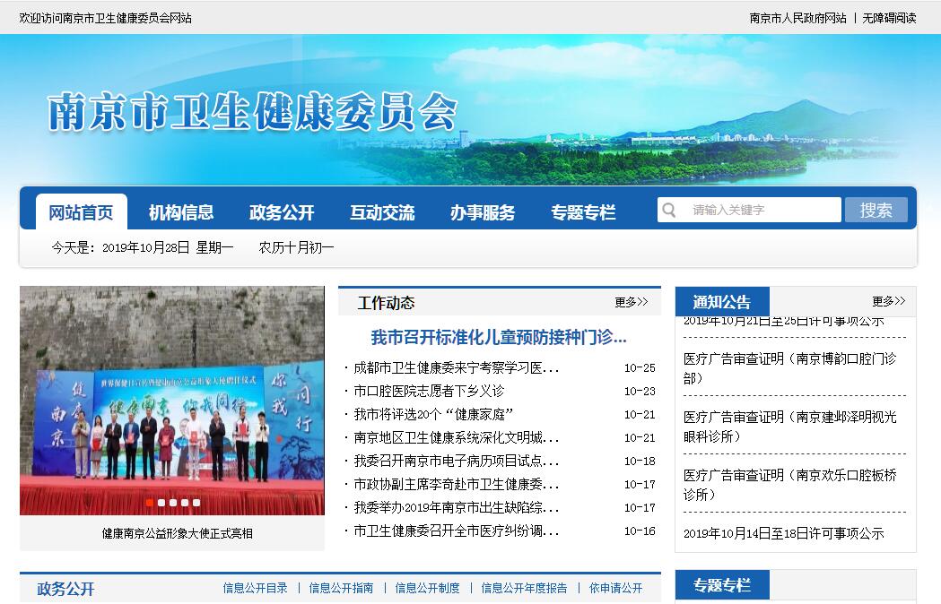 南京市卫生健康委员会主要职责:(一)贯彻实施国民健康政策,拟订全市卫生健康事业发展地方性法规、规章草案和政策、规划,制定地方标准和技术规范。统筹规划卫生健康资源配置和信息化建设工作,指导全市卫生健康规划的编制和实施。制定并组织实施推进卫生健康基本公共服务均等化、普惠化、便捷化和公共资源向基层延伸等政策措施。(二)负责健康南京战略协调推进工作,研究提出健康南京建设的政策建议、制度措施和职责分工并协调实施。统筹全市健康促进与健康服务工作。(三)协调推进深化医药卫生体制改革,会同有关部门研究提出深化医药卫生体制改革重大部署、政策、措施的建议。组织推动公立医院综合改革,推进管办分离,健全现代医院管理制度,制定并组织实施卫生健康公共服务提供主体多元化、提供方式多样化的政策措施,提出医疗服务和药品价格政策的建议。(四)贯彻实施国家中医药法律、法规,拟订并组织实施中医药中长期发展规划、政策措施,并纳入全市卫生健康事业发展总体规划和战略目标。负责中医药和中西医结合工作的管理。(五)制定并组织落实疾病预防控制规划、免疫规划以及严重危害人民健康公共卫生问题的干预措施。负责卫生应急工作,组织指导全市突发公共卫生事件的预防控制和各类突发公共事件的医疗卫生救援。发布法定报告传染病疫情信息、突发公共卫生事件应急处置信息。(六)组织拟订并协调落实全市应对人口老龄化政策措施,负责推进全市老年健康服务体系建设和医养结合工作。承担市老龄工作委员会办公室的具体工作。(七)开展药品使用监测、临床综合评价和短缺药品预警。提出基本药物价格政策的建议。(八)监督实施国家颁布的医疗机构和医疗服务全行业管理办法、卫生健康专业技术人员资格标准、执业规则和服务规范。建立全市医疗服务评价和监督管理体系。制定并组织实施医疗服务地方规范、标准和卫生健康专业技术人员执业规则、服务规范。(九)拟订职业卫生、放射卫生相关政策、地方标准并组织实施。组织开展职业病监测、专项调查、职业健康风险评估和职业人群健康管理工作。(十)负责职责范围内的职业卫生、放射卫生、学校卫生、公共场所卫生、饮用水卫生等公共卫生的监督管理,负责传染病、职业病防治监督,健全卫生健康综合监督体系,推进全市卫生健康诚信体系建设。组织开展食品安全风险监测、评估,依法制定并公布食品安全地方标准,开展食品安全企业标准备案。(十一)负责计划生育管理和服务工作,开展人口监测预警,研究提出人口与家庭发展相关政策建议,落实计划生育政策和人口发展规划相关任务。(十二)指导全市基层卫生健康工作,推进基层医疗卫生、妇幼健康服务体系和全科医生队伍建设。(十三)拟订全市卫生健康科技发展规划,组织实施卫生健康相关科研项目。推进卫生健康科技创新发展。组织实施毕业后医学教育和继续医学教育工作。组织开展住院医师和专科医师规范化培训工作。(十四)拟订全市卫生健康人才发展规划,指导卫生健康人才队伍建设。(十五)负责卫生健康宣传、健康教育等工作。组织指导对外交流合作和援外工作,开展与港澳台的交流与合作。(十六)负责市干部保健委员会确定的保健对象的医疗保健工作,负责市级部门有关干部医疗管理工作,负责重要会议与重大活动的医疗卫生保障工作。(十七)承担健康南京建设领导小组办公室、市爱国卫生运动委员会办公室等的具体工作。指导市计划生育协会的业务工作。(十八)完成市委、市政府交办的其他任务。