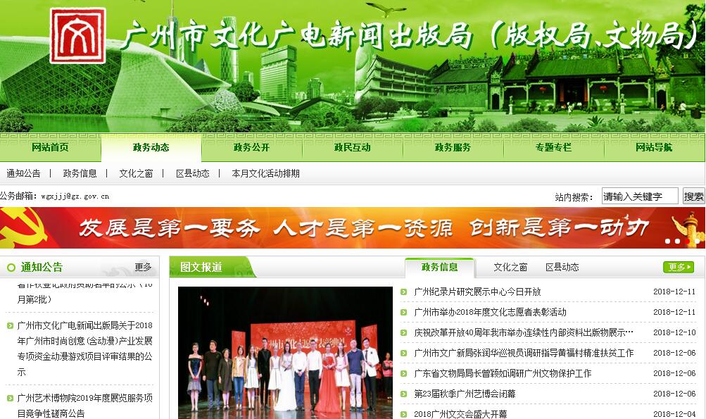 根据省委、省政府批准的广州市人民政府职能转变和机构改革方案,设立广州市文化广电新闻出版局(以下简称市文化广电新闻出版局),加挂广州市版权局、广州市文物局牌子。主要职责如下:(一)贯彻执行国家、省、市有关文化艺术、文物保护、广播电影电视、新闻出版和著作权管理的方针政策和法律法规;起草有关地方性法规、规章草案,拟订文化艺术、文物保护、广播电影电视、新闻出版(版权)事业和产业发展规划并组织实施。(二)研究制定文化艺术、文物保护、广播电影电视和新闻出版(版权)事业和产业发展的政策措施;指导和协调文化艺术、文物保护、广播电影电视、新闻出版(版权)事业和产业发展;指导和推进文化艺术、文物保护、广播电影电视、新闻出版领域的体制改革和机制创新。(三)指导、管理文化艺术事业和社会文化事业;协调、指导艺术创作和生产,扶持代表性、示范性、实验性文化艺术品种,推动各门类艺术的发展;推进公共文化服务,引导公共文化产品生产;指导图书馆、文化馆(站、室)事业和基层文化建设;组织协调全市文化设施建设规划,指导、规划、协调和监管市重点文化艺术、广播电影电视基础设施和基层文化设施建设工作;管理全市性重大文化艺术活动。(四)组织协调文化遗产的管理和保护;指导和管理文物、博物馆事业,组织指导文物的保护抢救、考古发掘和开发利用工作;组织实施非物质文化遗产保护和优秀民族文化的传承普及工作;负责本市世界文化遗产项目的申报和中国世界文化遗产地的管理工作;参与历史文化名城、名镇、名村的保护和监督管理工作。(五)负责广播电视行业管理;监管广播电视节目、卫星电视节目收录和通过信息网络传播广播电影电视类节目以及广播电视节目制作经营活动、从事广播电影电视节目制作的民办机构;负责广播电影电视、信息网络视听节目服务机构和业务的监管并实施准入和退出管理,负责全市广播电视节目监测工作;组织和管理全市广播电视覆盖网建设、技术维护和开发工作,管理全市性重大广播电影电视活动。(六)指导各区、镇广播电视播出机构和广播电视节目、影视制作单位的工作;组织审查在广播电视中播出的电视剧及其他节目、信息网络传播电视类节目的内容和质量。(七)负责对新闻出版发行机构进行行业监管,实施准入和退出管理;承担辖区内非法出版物、违禁出版物的鉴定工作;指导查处严重违规出版物和违法、违规出版活动;对从事出版活动的民办机构进行监管;监督管理报纸、期刊、图书、音像制品、电子出版物市场。(八)会同有关部门监督管理印刷业;负责印刷企业开办、年审和境外出版物(印刷品)来料加工的审核工作;指导开展查处违法、违规印刷行为的工作。(九)负责著作权管理工作,处理涉外著作权关系,调解著作权纠纷,监督管理著作权贸易活动;指导著作权行政执法,协调查处著作权侵权案件;指导开展著作权咨询、鉴定等服务工作。(十)协调、指导文化产业园区、基地和产业集群建设,促进文化产业和文化创意产业的繁荣与发展;指导协调网吧等上网服务营业场所的行业管理工作;负责对动漫游戏会展交易节庆等活动的管理。(十一)指导文化市场综合行政执法工作;负责对文化艺术经营活动进行行业监管。(十二)负责管理文化艺术、文物保护、广播电影电视、新闻出版和版权方面的对外交流与合作工作。(十三)制定文化人才培养规划,管理行业教育培训工作;指导文化艺术、文物保护、广播电影电视、新闻出版和版权事业的科研与开发应用工作。(十四)指导各区文化艺术、文物保护、广播电影电视、新闻出版和版权工作;指导文化艺术、文物保护、广播电影电视、新闻出版和版权方面的行业协会、学会工作。(十五)承办市委、市政府和上级主管部门交办的其他事项。