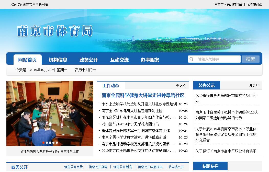 南京市体育局主要职责:(一)贯彻执行国家和省、市有关体育工作的方针政策和法律法规,起草体育工作的地方性法规、规章草案,制订相关措施并督促实施,全面加强体育法制建设,促进依法行政、依法治体。(二)指导和推进体育改革,编制全市体育发展战略和规划并组织实施,负责推进青奥体育遗产的传承发扬和开发利用,协调推进亚洲体育中心城市和世界体育名城建设。(三)承担统筹规划全市群众体育发展的责任。制订全民健身实施计划,推动全民健身运动的开展,指导开展群众性体育活动和社会体育工作。组织实施国民体质监测。加强社会体育指导员队伍建设。(四)承担统筹协调全市体育训练和体育竞赛的责任。规划运动项目设置和布局。指导优秀运动队建设。制定青少年业余训练规划和政策。指导全市青少年体育训练。加强体教结合工作。参加和承办重大体育竞赛。(五)承担统筹协调体育产业发展的责任。拟订全市体育产业发展规划和政策。依法开展体育市场监督检查工作。负责对南京体育产业集团的业务管理工作。(六)制订全市体育设施建设规划。指导公共体育设施的建设及其监督管理。(七)承担指导、管理全市体育外事工作的责任。开展国际间和与港澳台的体育交流与合作。(八)开展体育宣传、体育科技工作。组织开展体育领域科学研究、技术攻关和成果推广。组织开展体育运动中的反兴奋剂工作。(九)领导市体育总会。联系有关体育社团。(十)承办市委、市政府交办的其他事项。