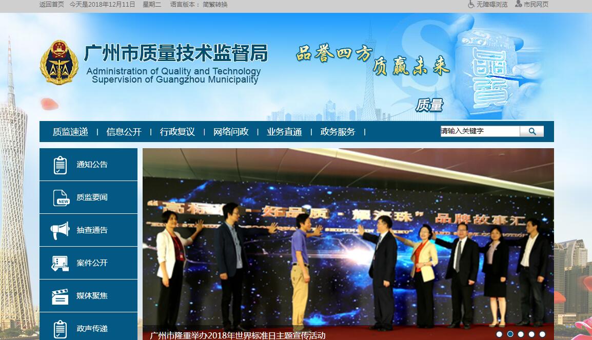 广州市质量技术监督局主要职责:(一)贯彻落实国家、省和市有关质量技术监督的方针政策和法律法规,起草有关地方性法规、规章草案,拟定提高全市质量水平的发展规划并组织实施。(二)承担产品质量诚信体系建设责任,负责质量宏观管理工作,实施国家质量振兴纲要,推进名牌发展战略和“质量兴业强市”工作,组织重大产品质量事故调查,实施缺陷产品召回制度。(三)负责产品质量安全监督工作,管理产品质量安全强制检验、风险监控和监督抽查工作,实施工业产品生产许可的监督检查,监督管理产品质量仲裁检验、鉴定工作;依法查处产品质量违法行为,按分工打击假冒伪劣违法活动。(四)负责管理标准化工作,协调实施标准化战略,组织、监督标准的实施,推行采用国际标准和国外先进标准,推进技术性贸易壁垒应对和防范体系建设,承担组织机构代码管理和商品条码监督检查工作。(五)负责管理计量工作,推行国家法定计量单位和组织执行国家计量制度,依法管理计量器具,组织量值传递和比对工作,推行工业计量现代化,规范和监督商品量和市场计量行为。(六)负责食品包装材料、容器、食品生产经营工具等食品相关产品生产加工的监管。(七)依法管理认证工作,监督管理实验室和检查机构的资质认定,监管认证中介机构、认证咨询机构的活动和认证及认证培训、咨询人员的执业行为。(八)承担综合管理特种设备安全监察工作的责任,监督管理高耗能特种设备节能工作,承担特种设备事故调查工作。(九)制定并实施质量技术监督科技发展和技术机构建设规划,组织重大科研攻关和技术引进工作。(十)承办市委、市政府和上级质量技术监督部门交办的其他事项。