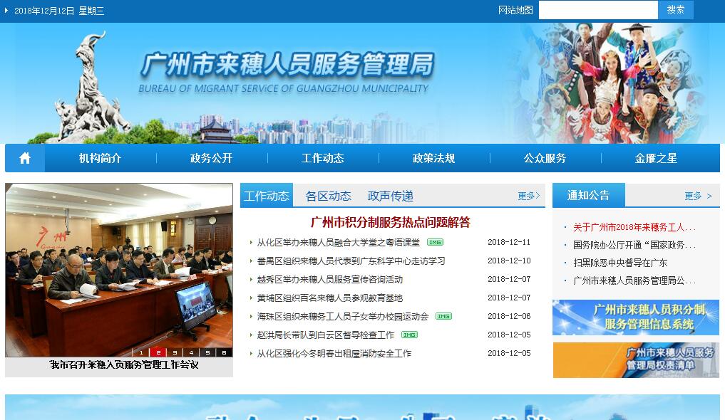 广州市来穗人员服务管理局主要职责:一、贯彻执行国家、省、市有关流动人口服务管理的方针政策和法律法规,起草来穗人员(非本市市区户籍人员,含来穗外国人)服务管理的地方性法规、规章草案;拟订来穗人员服务管理的发展规划、相关政策和规定标准并组织实施。二、负责组织、协调、指导、督促全市来穗人员和出租屋服务管理工作,参与有关来穗人员和出租屋服务管理的考核工作;牵头协调市、区推进来穗人员和出租屋服务管理体制和机制建设;负责研究来穗人员服务管理重大问题并提出决策建议。三、负责统筹协调并具体实施广州市积分制入户工作;参与调控来穗人员规模的相关工作;组织编制出租屋流动人员管理专项经费年度使用计划。四、负责界定来穗人员享受子女入学等优惠服务的资格;负责来穗人员在行业评优推先中的组织协调工作;协调推进和完善来穗人员的公共服务体系。五、负责开展来穗人员和出租屋服务管理相关政策的宣传教育;受理来穗人员咨询和投诉并督促相关部门调查处理,协调督促有关部门做好来穗人员的服务、培训和权益保障等工作。六、负责来穗人员和出租屋服务管理信息化建设;收集、登记、统计和分析全市来穗人员有关信息。七、协助有关职能部门做好房屋租赁登记备案、出租房屋税收征管,来穗人员计划生育,户口登记、居住证发放、出租房屋管理整治、日常巡查、社会治安综合整治等工作。八、指导各区来穗人员服务管理工作;加强全市来穗人员和出租屋管理员队伍建设。九、根据市政府授权,依据有关法律、法规,承担相关社会服务管理工作。十、承办市委、市政府和上级有关部门交办的其他事项。