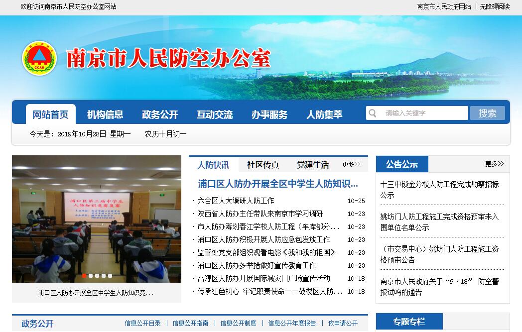 南京市人民防空办公室主要职责:(一)负责编制人民防空建设规划、城市平战综合防护建设发展规划、全市地下空间开发利用中、长期发展规划、人民防空工程建设规划、人民防空信息化建设规划、人民防空通信、警报建设规划;按照人民防空职责参与编制地下空间开发利用规划;会同发展和改革主管部门共同负责协调有关部门编制重要经济目标防护建设总体规划;组织制定城市防空袭方案和人防应急预案。(二)组织指导人民防空相关法律、法规、规章和政策的实施;研究制订人民防空行政管理和城市地下空间开发利用的地方性法规、规章草案和其他规范性文件;依据人民防空法律、法规实施行政执法工作。(三)组织指导、协调、督促有关部门、单位做好人民防空军事斗争准备工作,指导、督促、检查重要经济目标单位防护建设工作,指导人防专业队伍整组训练工作,负责人防志愿者队伍建设,定期组织人民防空演练,组织人民防空指挥所、城市人口疏散基地(地域)及其配套设施建设和管理,负责人防通信和警报网的建设和管理,承担防空警报试鸣和国家公祭日鸣放防空警报器工作;负责研究并实施人民防空信息化建设工作;负责机关“准军事化”建设工作。(四)发挥人民防空资源的作用,参与城市平时抢险救灾、应急救援工作。(五)负责由政府财政投资和人防办自筹资金投资的人民防空工程建设工作;指导、监督、检查全市地下空间开发建设中落实人民防空要求;负责人民防空工程建设和防护设备质量的监督管理;负责指导有关部门和单位制定人防工程平战转换的预案;负责组织开展全市人防系统的科研工作。(六)负责城市地下空间开发利用综合协调工作;负责公用人防工程的开发利用和维护管理工作;负责指导相关部门、单位做好人民防空工程及设施的开发利用和维护管理工作;负责指导、督促、检查人民防空工程安全工作。(七)负责结合民用建筑修建防空地下室、易地建设防空地下室(即不能结合地面建筑就地修建防空地下室)、人防工程拆除或报废(防护级别为5 级及5级以下)、改造和影响人防工程安全施工作业、开发利用的行政许可工作;负责单独建设人民防空工程设计文件的审查;负责防空地下室防护设计审查;负责人防工程竣工报告、认可文件和人防使用权变更的备案。(八)依法筹集人民防空建设经费,编制人民防空经费预算,监督检查人民防空财务管理规定和制度执行情况;监督人防工程建设计划、设计、技术和造价管理;负责人民防空国有资产的管理和内部审计工作。(九)组织实施全市人民防空宣传教育;负责相关教育场馆的建设与管理工作;指导、督促、检查辖区内人民防空知识的普及教育及训练工作。(十)战时,组织协调市人民防空指挥机构各部门工作,参与组织筹划实施人民防空行动,按上级命令组织平战转换、适时发放防空警报。(十一)负责机关和直属单位的党群工作;负责机关及直属单位机构编制、人事管理工作;负责离退休干部的管理和服务工作;负责与国际民防组织的交流工作。(十二)承担市国防动员委员会常设办事机构的日常工作;承办市委、市政府、南京警备区交办的其他事项。