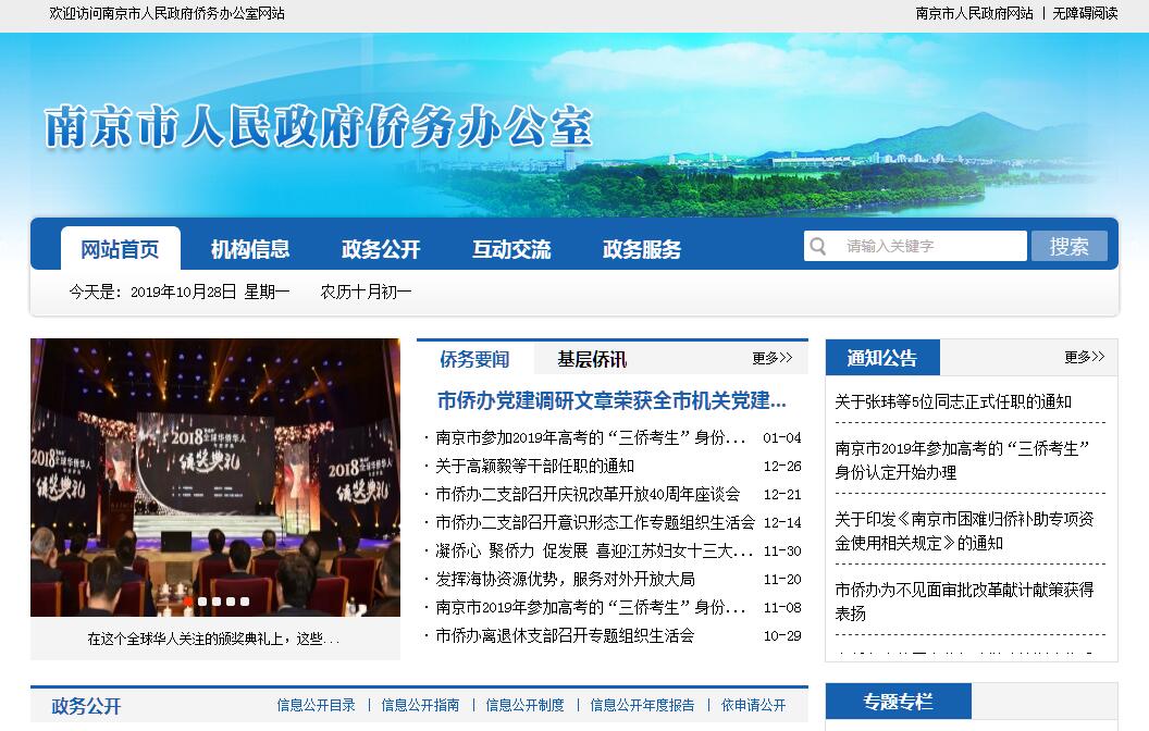 | 网站简介: 南京市人民政府侨务办公室承担指导全市归侨侨眷工作的责任。依法组织协调归侨侨眷和华侨华人在国内的合法权益维护工作。配合有关部门研究处置涉侨突发事件。 |