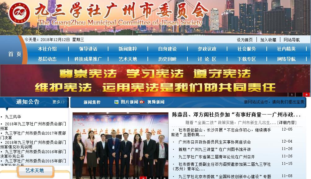 九三学社是以科学技术界高、中级知识分子为主的具有政治联盟特点的政党,是接受中国共产党领导、同中国共产党通力合作的亲密友党,是中国特色社会主义参政党。九三学社与五四运动有着深厚渊源。本社创始人或积极参加五四运动,或深受五四运动影响。抗日战争后期,一批文化教育、自然科学学者继承并发扬五四运动反帝反封建的爱国精神,以民主、科学为宗旨,在中国共产党支持和抗日民族统一战线政策感召下,在重庆发起民主科学座谈会,自然科学座谈会的学者也陆续加入。为纪念抗日战争和世界反法西斯战争的伟大胜利,1945年9月3日,民主科学座谈会召开扩大会议,并更名为九三座谈会。1946年5月4日,改建为九三学社。 九三学社作为统一战线和多党合作的重要组成部分,接受中国共产党领导、同中国共产党亲密合作,走过了70多年的光辉历程。在中国共产党领导下,九三学社和全国各族人民一道,为夺取新民主主义、社会主义革命和建设事业的伟大胜利,为巩固和发展爱国统一战线、建立完善中国共产党领导的多党合作和政治协商制度,为推进改革开放和中国特色社会主义现代化建设作出了重要的贡献。一直以来,九三学社广州市委员会高举爱国主义、社会主义旗帜,紧紧围绕党和国家的中心工作,坚持四项基本原则,坚持改革开放,致力于加强和完善中国共产党领导的多党合作和政治协商制度,大力弘扬爱国、民主、科学优良传统,着力推动科学发展,努力加强自身建设,积极参政议政,利用自身优势开展科普活动、九南合作、智力支边、扶贫赈灾等各项社会服务,为促进广州市改革发展作出了积极贡献。