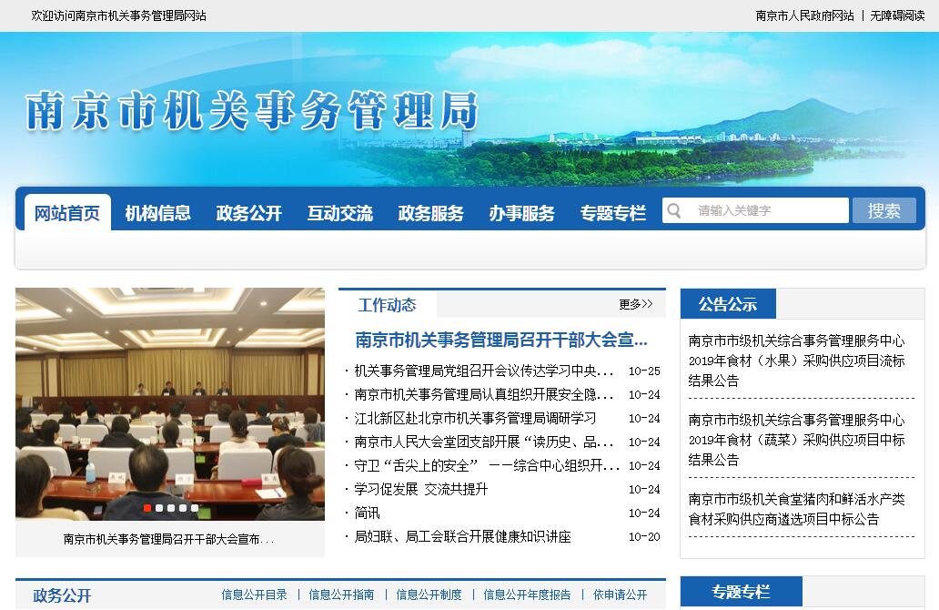 南京市机关事务管理局是市政府工作部门,主管市级机关后勤事务工作,承担市级机关房地产管理、国有资产管理、车辆管理、安全管理和卫生管理等职能。其主要职责是:(一)贯彻执行党和国家的有关方针政策,研究制定全市机关事务管理工作的具体政策和管理制度并组织实施。(二)会同有关部门研究制定并组织实施全市机关事务管理体制改革的政策和办法,指导区和市级机关部门机关事务工作。(三)负责市级机关和事业单位的办公用房、车辆等有关国有资产产权界定、清查登记工作。(四)综合管理市级机关房地产,管理市级机关土地使用权;负责市级机关办公用房的权属、调配、使用、处置和基建、修缮的统一管理工作;负责市级机关办公用房维修改造项目审批;负责市级机关办公用房和自有产权、代管房产住宅的管理工作;负责市级机关物业管理标准制订及政治核心区域、保密区域的物业管理工作。(五)负责市级机关和事业单位公务车辆的集中统一管理;审核公务用车的编制、配备、更新、报废事项;指导区机关公务用车管理工作;监管市属国有企业公务用车;负责南京市承办的重大政治、经济、文化活动的公务车辆服务保障工作。(六)推进节约型机关的建设工作;会同市节能主管部门,负责全市公共机构的节能管理工作;制定全市公共机构的节能规划、能源消耗定额和节能目标并组织实施。(七)负责市级机关的治安保卫工作,维护机关集中办公区的交通秩序,协助处理机关内部的交通事故、治安案件;协助有关部门维护集中办公区的上访秩序和市级领导集中住宅区的安保工作。(八)负责市级机关爱国卫生、环境综合治理标准化建设、绿化美化和人民防空工作。(九)会同有关部门承办来我市的内宾接待服务工作;协助承担市重要会议、大型活动的服务保障工作。(十)承办市委、市政府交办的其他事项。