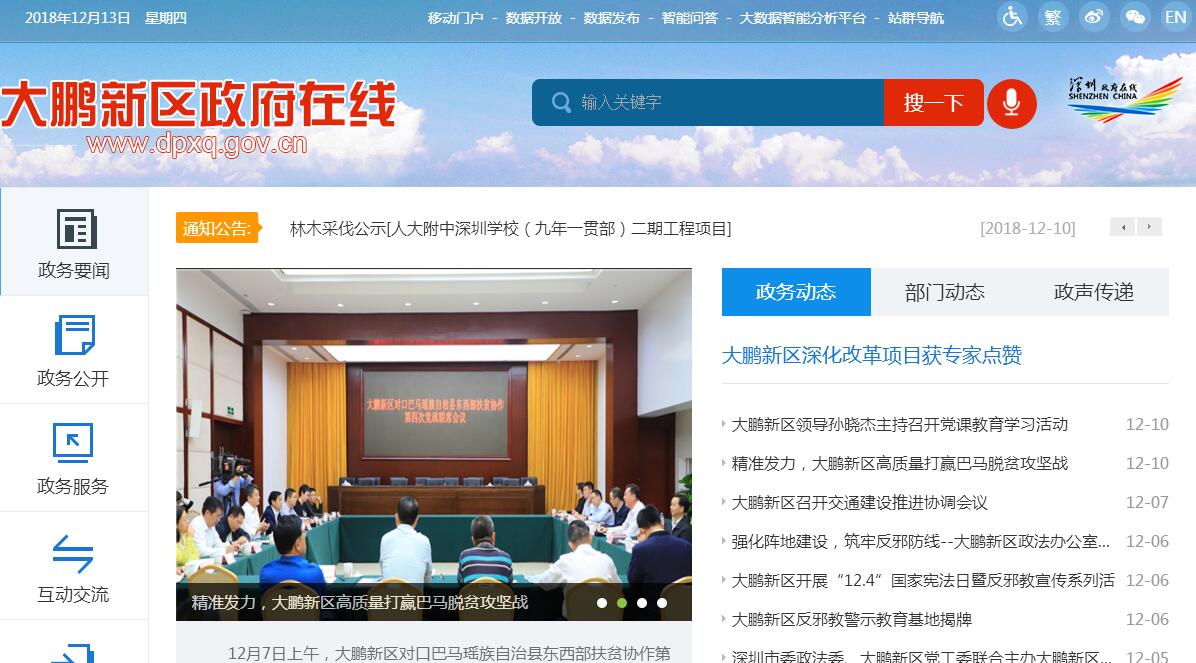 | 网站简介: 大鹏新区是深圳龙岗区的一个功能新区,成立于2011年12月30日,位于深圳东南部,三面环海,东临大亚湾,与惠州接壤,西抱大鹏湾,遥望香港新界,是粤港澳大湾区的重要节点。辖区面积600平方公里,其中陆域面积295平方公里,约占深圳市六分之一,海域面积305平方公里,约占深圳市四分之一,海岸线长133.22公里,约占全市的二分之一。共有28座水库(含2座市管水库),五个一级水源保护区水库水质为优,其中四个达到二级。下辖葵涌、大鹏、南澳三个办事处,25个社区,常住人口近20万,户籍人口3.9万。客家文化、海防文化、渔农文化、渔村文化是新区典型的非物质文化遗产。新区现有不可移动文物点98处,具有地方特色的有价值村落共19个,其中半天云村被评为“广东省自然生态类最美乡村旅游示范点”。 大鹏新区有深圳大鹏半岛国家地质公园、龙岩古寺、赖恩爵将军第、刘起龙将军墓、福田世居、长安世居、坝光村等景点。大鹏半岛森林覆盖率超过76%,整个大鹏半岛被称为深圳最后的“桃花源”,被《中国国家地理》评为“中国最美的八大海岸”之一。2018年11月,入选第二批国家生态文明建设示范市县初选名单。 |