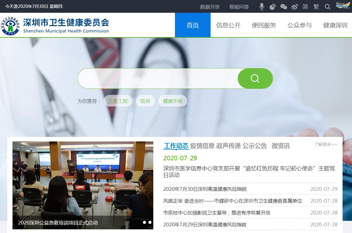 深圳市卫生健康委员会主要职责:(一)拟订卫生健康事业发展的地方性法规、规章草案和政策、规划并组织实施。统筹规划卫生健康资源配置,组织拟订区域卫生健康规划并组织实施。制定并组织实施推进卫生健康基本公共服务均等化、普惠化、便捷化和公共资源向基层延伸等政策措施。(二)协调推进深化医药卫生体制改革,研究提出深化医药卫生体制改革重大方针、政策、措施的建议。组织深化公立医院综合改革,健全现代医院管理制度,制定并组织实施推动卫生健康公共服务提供主体多元化、提供方式多样化的政策措施,提出医疗服务和药品价格政策的建议。(三)制定并组织落实重大疾病防治规划以及严重危害人民健康公共卫生问题的干预措施,组织实施免疫规划。负责卫生应急工作,组织指导突发公共卫生事件的预防控制和各类突发公共事件的医疗卫生救援。(四)组织拟订并协调落实应对人口老龄化政策措施,推进完善老年健康服务体系建设和医养结合工作。(五)组织制定药物政策,落实国家基本药物制度。开展药品使用监测、临床综合评价和短缺药品预警。提出基本药物价格政策的建议。组织开展食品安全风险监测评估,依法制定并公布食品安全地方标准。(六)负责职责范围内的职业卫生、放射卫生、环境卫生、学校卫生、公共场所卫生、饮用水卫生等公共卫生的监督管理,负责传染病防治监督,健全卫生健康综合监督体系。建立健全疾病预防控制、健康教育、妇幼保健、精神卫生、应急救治、卫生监督、计划生育等服务网络。组织开展爱国卫生运动。(七)负责医疗机构、医疗服务行业管理办法的监督实施,建立医疗服务评价和监督管理体系。会同有关部门制定并实施卫生健康专业技术人员资格标准。制定并组织实施医疗服务规范、标准和卫生健康专业技术人员执业规则、服务规范。(八)负责计划生育管理和服务工作,开展人口监测预警,研究提出人口与家庭发展相关政策建议,完善计划生育政策。指导市计划生育协会的业务工作。(九)指导基层卫生健康工作,指导基层医疗卫生、妇幼健康服务体系建设和全科医生队伍建设,完善基层卫生健康服务功能。推进卫生健康科技创新发展。(十)指导干部保健工作。负责重要会议与重大活动的医疗卫生保障工作。(十一)拟订全市中医中长期发展规划并组织实施。负责中医药的继承、创新和中西医结合工作,统筹协调中西医发展。(十二)开展卫生健康工作领域的国际交流与合作、对外宣传、援外工作,开展与港澳台地区的交流与合作。组织开展继续医学教育。(十三)研究拟订全市卫生健康人才发展政策并组织实施,推动高素质专业化卫生健康人才队伍建设。(十四)负责卫生健康行业安全生产工作,负责安全生产事故有关的卫生应急处置和紧急医学救援工作。(十五)完成市委、市政府和上级部门交办的其他任务。