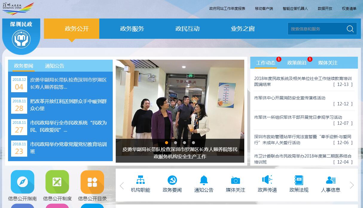 根据《中共深圳市委 深圳市人民政府〈关于深圳市人民政府机构改革方案〉的通知》(深发[2009]9号),设立深圳市民政局(简称市民政局),为市政府工作部门。其主要职责:(一)贯彻执行国家、省、市有关民政工作的法律、法规和政策,起草有关地方性法规、规章、和政策,经批准后组织实施;拟订民政事业和社会工作的发展规划。(二)组织和指导拥军优属工作,承办烈士称号和因战因公伤残人员等级评定的申报和烈士褒扬有关服务工作。(三)指导各区、军休单位做好承担军队离退休干部、退休士官、无军籍退休退职职工和复员干部、退伍士兵、伤残军人的接收安置工作。(四)组织、协调救灾救济工作,推进自然灾害救助体系建设,组织核查并统一发布灾情,接收、管理、分配救灾捐赠物品,组织、指导救灾捐赠。(五)承担组织实施居民最低生活保障、医疗救助、临时救助、流浪乞讨及生活无着人员救助的责任,完善社会救助体系。(六)负责社会福利工作,逐步建立普惠型社会福利制度,创新慈善事业工作机制;指导社会福利彩票的发行与社会捐助;负责福彩公益金的管理、使用和发放;指导各类福利设施、机构、企业的建设和服务管理工作;负责全市老龄工作。(七)负责行政区划工作,承担区、街道的设立、撤销、调整、更名、界线变更以及政府驻地迁移的审核报批;负责市内各级行政区域的界线勘定和管理。(八)推进殡葬改革;负责收养登记,指导婚姻登记管理;指导婚姻、殡葬、救助服务机构管理工作。(九)推动基层民主政治建设,指导基层群众自治组织建设和社区建设,指导社区管理服务体系建设。(十)完善社会工作制度,统筹协调社会工作,推进社会工作人才队伍建设。(十一)承担依法对社会团体、民办非企业单位、基金会进行登记管理和监察的责任,深化社会组织管理体制改革。(十二)承办市政府和上级部门交办的其他事项。