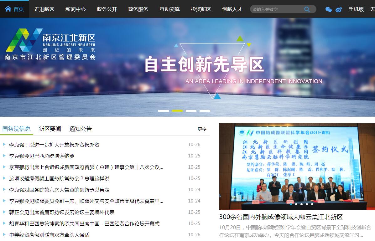 南京江北新区,2015年6月27日由国务院批复设立,成为全国第13个、江苏省首个国家级新区。根据国务院批复,新区战略定位是“三区一平台”,即逐步建设成为自主创新先导区、新型城镇化示范区、长三角地区现代产业集聚区、长江经济带对外开放合作重要平台。新区位于江苏省南京市长江以北,规划面积788平方公里;其中,直管区管辖7个街道386平方公里,常住人口130万。2018年,新区全域实现地区生产总值2528亿元,同比增长11.8%。其中,直管区地区生产总值1471亿元,同比增长13.1%,主要指标增幅均明显高于江苏省、南京市平均水平。南京江北新区获批以来,得到了江苏省委省政府、南京市委市政府的高度重视。2017年5月18日,南京市委、市政府对新区组织架构、空间架构和赋权架构进行了优化调整,设立直管区、共建区和协调区,极大拓展了新区发展空间,激发了新区发展活力。2017年7月,江苏省人大常委会批准《南京市人民代表大会常务委员会关于南京江北新区行政管理事项的决定》,明确江北新区管委会统筹协调新区范围内改革创新、经济社会发展、产业部局、开发开放等工作,并负责直管区内经济管理、城市建设管理、社会事务和社会管理,行使省、市依法赋予的和区级的行政管理权限。南京市在2019年政府工作报告中明确提出,要深化“两城一中心”建设、提升新区综合承载能力、加快新区改革开放步伐,全力打造江北新主城。新目标催生新动力,新征程激发新作为。在新的发展起点上,南京江北新区将高举习近平新时代中国特色社会主义思想伟大旗帜,全面贯彻中央和省、市决策部署,牢牢锁定“三区一平台”战略定位,积极抢抓“一带一路”、长江经济带、长三角一体化三大国家战略机遇,加快推进创新名城先导区和“两城一中心”建设,完善现代化基础设施,加强生态文明建设,扩大对外开放合作,高质量推进新主城建设,努力建成全省全市发展新的重要增长极,为建设“强富美高”新江苏做出新的更大贡献。