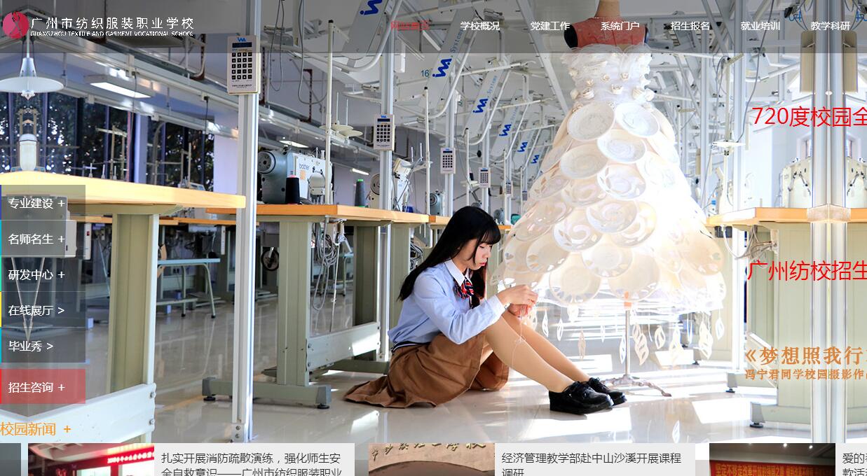 广州市纺织服装职业学校创办于1958年,是广州市属公办国家级重点中等职业学校,广东省示范性中等职业学校。在广州市海珠区赤岗和花都区赤坭有两个校区,两个校区占地面积约78000平方米,办学规模4000多人。学校坚持改革创新,以发展时尚创意产业的职业教育作为一个新起点。时尚创意产业是由纺织服装产业发展而来的一种高端的文化产业形态,也是新兴的产业形态。其以文化创意元素为主导,引领产业的时尚潮流,成为产业的风向标,提高了整个纺织服装产业链的经济附加值和环境保护的能效,是国家今后大力发展文化创意产业的一个组成部分。学校设有时尚产业、艺术创意、轻纺产业、商务营销四大类专业,服装类专业规模在国内同类学校名列前茅,其中服装设计与工艺专业是省重点专业。以重点专业为核心,学校各类专业向时尚创意产业的升级转型和跨界等方面坚持探索实践,开发了服装表演(模特)、陈列设计、形象设计、服饰流行资讯、电子商务(服装网络营销)等专业方向,在各类专业中融入的时尚文化创意、环保和互联网+元素,以专业链对接产业链,形成了自身的办学特色。学校地处的海珠区,有全球最大的服装纺织品商业园区和时尚产业设计园区,也有全球最大的会展商圈。学校利用地缘优势,整合教育资源,引企业入校,深度合作,孵化学校时尚创意园区;入驻广州轻纺交易园区,与企业深度融合,为产业提供各类专业和层次的人才支持,解决技能人才缺乏问题,让教育成为时尚创意产业的助推器,也为职业教育开拓了一个具有良好发展前景的新领域。2010年第十六届广州亚运会前,学校教师设计团队在全国众多专业设计公司和高校的竞标中脱颖而出,成为亚运会火炬传递系列服装设计的中标单位,成功为亚运会设计出火炬传递系列服装《骄羊圣火》和亚运圣火采集“圣女”服装,创造了我国中等职业学校在国家级项目竞标中的一个成功范例。学校设有服装研发中心,创建自主服装设计品牌Y.JOLIE,与企业合作,直接参与高端定制的市场竞争;2013年学校联合国内外多家知名纺织服装企业成立广东国际流行趋势联盟,为企业提供行业高端服务和流行趋势研究发布;2015年,与企业合作成立童装设计师俱乐部,开启新的设计领域,不断创造校企合作的新形式。紧跟产业科学技术的发展,学校在各专业的教学中广泛使用数字化系统软件和设备,包括三维服装试衣仿真设计系统、服装CAD、纺织品设计CAD、3D全息投影、Crazytalk animator 2D、 iClone 3D及谷歌sketchup Pro 3D等动画设计工作站、网络营销模拟教学实训系统等等,还建成了国内最先进的采用无线射频技术计算机控制的服装制作流水生产线系统,使用数控织机等新技术设备,从整体上不断提高课堂教学、实训和研发的科技含量。学校与国内外数十家企建立了稳定的合作关系,本着人才共育、效益共享、资源共用的原则,经过多年的努力,通过顶岗实习,建立合作基地,订单培养,引企入校、企中设校、共同开发、近些年来,学校的学生在国家、省市的技能大赛中,在国内境外各类时尚设计、表演中,为学校获得了数百项荣誉,彰显学校的办学实力。学校曾经创办广州大学纺织服装学院,具备高校的办学实力,现设有广州市广播电视大学纺织服装分院,并与国内高校合作,开设服装、工艺美术、纺织、经贸类高职专业,还开设名师班,特邀全国著名服装设计师亲自授课、指导,为中高职一体化衔接,为学生专业理论和技能的同步深造,提供了多种途径。学校未来继续以提高人才培养质量为目标,以产教融合、校企合作为抓手,建立从招生到就业、从专业建设到教学过程到学习评价,全程覆盖、既有广度又有深度的校企合作体系,构建体现终身教育理念的职教体系。