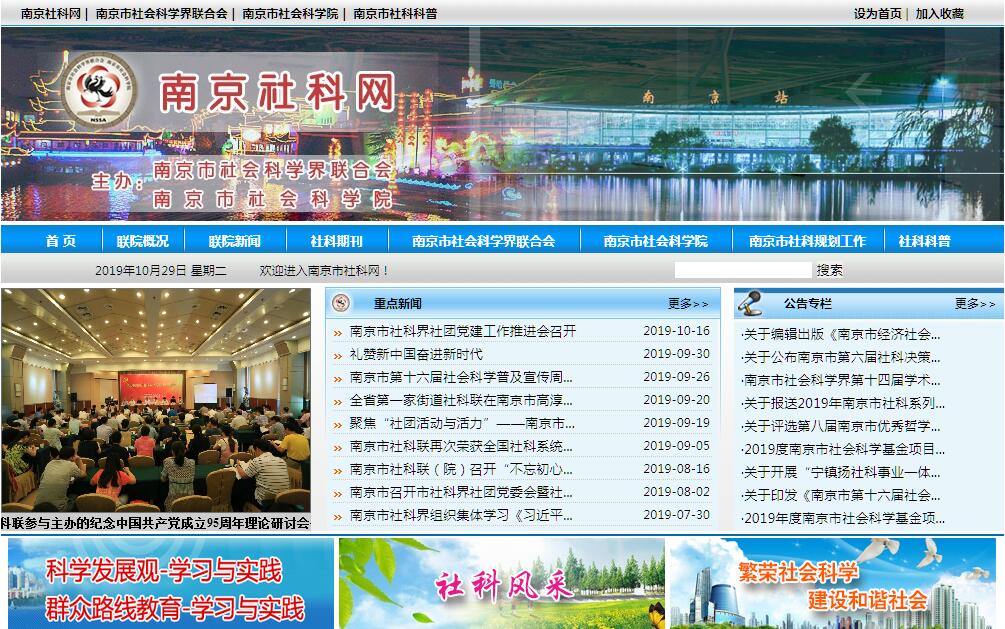 | 网站简介: 南京社科网由南京市社会科学界联合会,南京市社会科学院主办。南京市社会科学院于1997年1月成立,是市政府直属正局级事业单位,与市社科联合署办公。 |