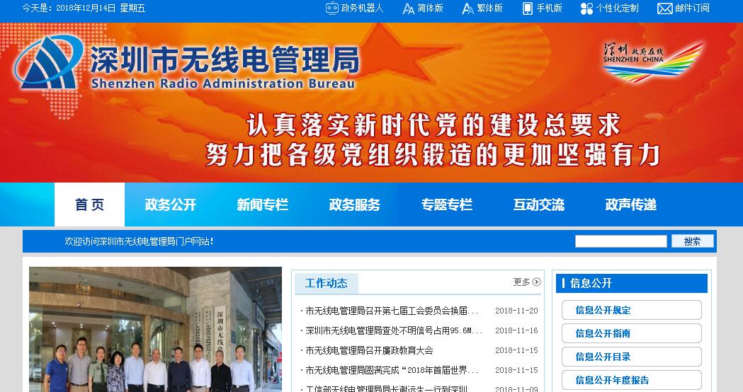 | 网站简介: 深圳市无线电管理局主要职责:一、贯彻执行国家有关无线电管理工作的方针、政策、法规;拟定本市相关政策、法规,经批准后组织实施。二、负责维护全市无线电波秩序,管理全市电磁环境,协调处理本市内无线电管理方面的事宜。三、负责全市范围内各类无线电台(站)的建设布局和台址管理,指配无线电台(站)的频率和呼号,核发无线电台执照。四、依法查处全市设置、使用和研制、生产、销售、进口无线电设备等方面的违法违章行为;查处有害的无线电波干扰,保障重要无线电业务正常运行。五、负责全市无线电设备的设置、使用和研制、生产行业的管理;负责销售行业的监管;负责无线电设备进口的管理和有关技术标准的审查;对本市生产的无线电发射设备产品型号进行管理。六、负责深港边界地区无线电频率的管理及过界车辆设置使用无线电台的管理;负责承办外国驻深代表机构、来华团体、客商等外籍人士在本市设置、使用无线电台(站),携带或者运载无线电设备的管理。七、指导、协调无线电监测和涉外无线电管理的有关事项。八、承办市委、市政府和上级主管部门交办的其他事项。 |