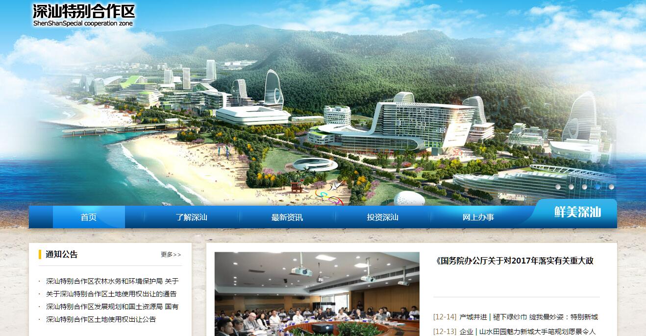 2011年2月18日广东省委、省政府批复《深汕(尾)特别合作区基本框架方案》,正式设立深汕特别合作区(以下简称合作区)。2011年5月21日,广东省委、省政府将“中共深汕特别合作区工作委员会”、“深汕特别合作区管理委员会”牌子授予深圳、汕尾两市,合作区正式运作。 合作区位于广东省东南部,地处珠三角平原和潮汕平原之间,西、北部与惠州市惠东县接壤,东与汕尾市海丰县相连,南临红海湾,是粤东通往珠三角地区的桥头堡。合作区规划范围包括汕尾市海丰县鹅埠、小漠、鲘门、赤石四镇,总面积468.3平方公里,包括农用地407.52平方公里,未利用地13.55平方公里,建设用地47.23平方公里。其中,可建设用地145平方公里,海岸线长42.5公里,区内常住人口为7.65万人。合作区党工委、管委会为省委、省政府派出机构,享有地级市一级管理权限,委托深圳、汕尾两市管理,深圳市主导经济管理和建设,汕尾市负责征地拆迁和社会事务。合作区党工委、管委会下设综合办公室、党群工作局(纪工委机关、监察审计局)、发展规划和国土资源局、经济贸易和科技局(投资促进局)、财政局、城市建设和管理局、农林水务和环境保护局(海洋局)、社会事务局、市场监督管理局(物价局)等9个部门,合作区单独设立国税、地税、公安机构。