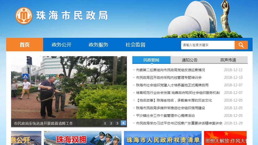 根据《中共珠海市委珠海市人民政府关于印发<珠海市人民政府机构改革方案><珠海市部分市直机构调整方案><珠海市人民政府机构改革方案实施意见>的通知》(珠字〔 2009 〕 9 号),珠海市民政局主要职责:(一)贯彻执行国家和省有关民政事业和社会工作的方针、政策和法律、法规,制定全市民政事业和社会工作政策、法规及发展规划并组织实施。(二)负责社团和民办非企业单位的登记、管理、监督工作;查处社团组织和民办非企业的违法行为和以社团名义开展活动的非法组织、未经登记的民办非企业单位。(三)负责退役士兵、复员干部和军队移交地方管理的离退休干部、退伍士官和军队无军籍退休退职职工的接收安置工作,按市人民政府授权,负责组织指导拥军优属、双拥共建和烈士申报、褒扬工作,负责优待、抚恤工作和革命烈士纪念建筑物的建设和管理,指导军休所的建设和管理工作。(四)组织、协调救灾救济工作,推进自然灾害救助应急体系建设,组织核查并统一发布灾情,会同有关方面组织协调紧急安置灾民和灾后重建救助工作,接收、管理、分配市级救灾款物并监督使用,组织、指导救灾捐献。(五)推动城乡基层政权建设和基层民主政治建设,指导基层群众自治组织建设,拟订基层自治组织活动的指导意见和培育、支持、资助、表彰社区组织及个人的具体措施。(六)负责社区建设、社会组织建设、社会工作的总体规划、改革方案、宏观政策并组织实施,会同有关部门加强相关立法工作。(七)负责社会工作人才队伍建设的有关工作;统筹落实社会工作人才队伍的建设规划;提出加强社会工作人才队伍建设的意见建议;牵头建立健全对社会工作人才队伍的培养、评价、使用、激励等的政策措施和制度保障,实施社会工作者注册和备案制度,指导和监督全市志愿者注册登记工作,探索社工引领义工的工作机制。(八)负责拟订培育和扶持社会组织的政策措施,拟订社会服务的评估办法和社会组织备案注册管理监督办法,会同有关部门制定政府购买社会服务的具体办法和审核标准;会同有关部门监督、检查、落实社区公共服务设施的建设管理工作,拟订社会力量参与社区服务的具体办法,协调各类资金用于社区公共服务设施的建设、维修和管理。(九)负责行政区划工作,研究和修订全市行政区域规划,负责区、镇、街道的设立、撤销、调整、更名和市、区行政区划界线变更以及政府驻地迁移的审核报批工作,负责市区行政区划边界勘定和管理工作,负责边界争议的调处事务,组织编制地名规划,负责地名命名、更名、销名工作,规范地名标志设置和管理工作。(十)负责推进婚俗和殡葬改革,负责收养登记管理工作,指导婚姻、殡葬、收养、救助服务机构的管理工作。(十一)负责社会福利工作,指导监督各类社会福利机构的工作,组织指导社会慈善募捐工作,促进慈善事业发展,提出社会力量兴办社会福利的优惠政策和措施。(十二)负责拟定城乡社会救助政策,组织实施城乡居民最低生活保障、医疗救助、临时救助、流浪乞讨及生活无着人员救助工作;指导老年人、孤儿、弃婴(童)、五保户、残疾人等特殊困难群体的权益保障工作,协同有关部门制定对社会组织或困难群体的各项资助、扶助政策和措施;负责与社会工作相关的公益性岗位的开发和管理工作,会同有关部门拟订对就业困难群体实施岗位援助的具体办法和措施。(十三)负责社会福利彩票发行管理和彩票公益金的管理、使用、发放工作。(十四)负责社区党建和新社会组织党建工作,及时分析社区和新社会组织的发展动态和趋势,积极探索新时期加强和改进社区、新社会组织党建工作的有效途径,研究拟订加强社区党建和新社会组织党建工作的总体规划和政策措施,并组织实施。(十五)承办市委、市政府和上级部门交办的其他事项。