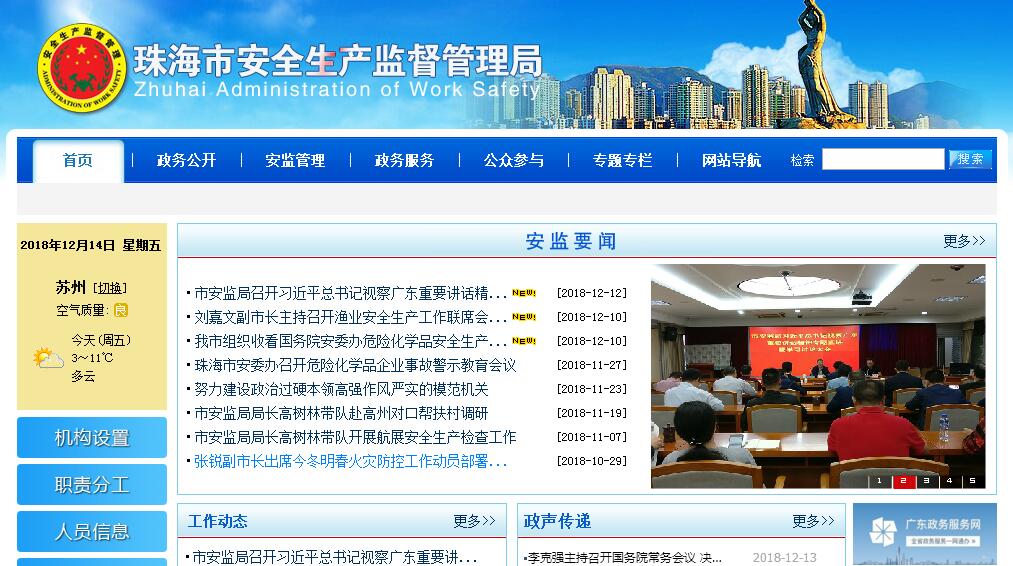 珠海市应急管理局,为市人民政府工作部门。其主要职责是:(一)贯彻执行国家和省有关安全生产工作的方针政策和法律法规,拟订安全生产政策和规划,指导协调全市安全生产工作,分析和预测全市安全生产形势,发布全市安全生产信息,协调解决安全生产工作中的重大问题。(二)推进各级政府安全生产责任制的贯彻落实,并对有关部门依法履行安全生产职责及安全生产工作情况进行指导、协调、监督、检查及考核、考评。(三)牵头组织有关部门进行安全生产联合大检查或督查活动,督促有关部门抓好检查、督查中发现的问题与隐患的整改。(四)承担职权内的非煤矿矿山企业、危险化学品生产经营单位、烟花爆竹经营单位行政许可管理职责。(五)负责职责范围内的工矿商贸生产经营单位、危险化学品生产经营单位、烟花爆竹经营单位安全生产监督管理工作。(六)负责对生产经营单位在生产经营活动中涉及安全生产的违法行为进行查处,组织指导协调和监督全市安全生产行政执法工作。(七)负责组织指挥和协调安全生产应急救援工作,进行安全生产综合情况及事故情况的统计、分析,及时向社会公布。(八)依法组织较大生产安全事故调查处理和办理结案工作,监督事故查处和责任追究落实情况。(九)承担特种作业人员(特种设备作业人员除外)的考核工作和工矿商贸生产经营单位主要负责人、安全生产管理人员的安全资格考核工作,监督检查工矿商贸生产经营单位生产安全培训工作。(十)统筹开展安全生产宣传教育工作,对安全培训机构执业情况进行监督检查。(十一)承担市安全生产委员会的日常工作。(十二)承办市人民政府和上级主管部门交办的其他事项。