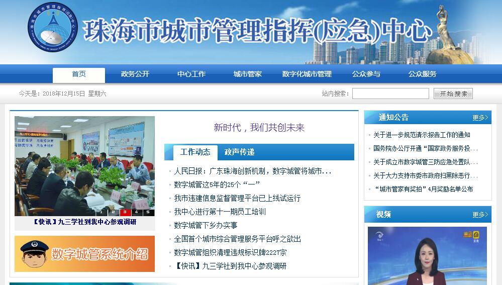 珠海数字城管于2014年1月完成重组,为副处级独立法人单位,下设办公室、指挥室、监察室、建设技术室、财务装备室、政策法规室和巡查支队,现有192人,对六个区级指挥中心实行双重管理。本中心隶属于珠海市城市管理委员会,市政府将其定位为珠海城市管理的指挥员、监督员和裁判员,具体负责珠海数字城管的建设、运行和管理,负责全市城市治理的指挥协调、应急处置和综合评价。珠海“数字城管”是珠海唯一的全市性的、综合性的信息化平台,主要由一个中心、三大主轴、五支队伍构成。一个中心是指挥中心,三大主轴是指案件巡查、任务派遣和监督考核,五支队伍是指案件巡查、案件受理、案件派遣、监督检查、综合评价等五种岗位。珠海“数字城管”项目由市城市管理指挥中心负责建设和运行,按“大城管”框架模式规划设计,实际总投资1.2亿元,分三期建设,一期开发建设了包括“全方位实时应急指挥系统”在内的12个系统,2010年5月建成运行,范围覆盖珠海主城区。2014年1月,我们启动了数字城管珠海陆地全覆盖工程,同时建设数字城管二期和三期项目。2015年12月,数字城管二期和三期项目已全部完成,金湾区、斗门区、高新区、横琴新区和高栏港区等七个区数字城管指挥中心先后上线运行,提前两年实现全市陆地全覆盖。