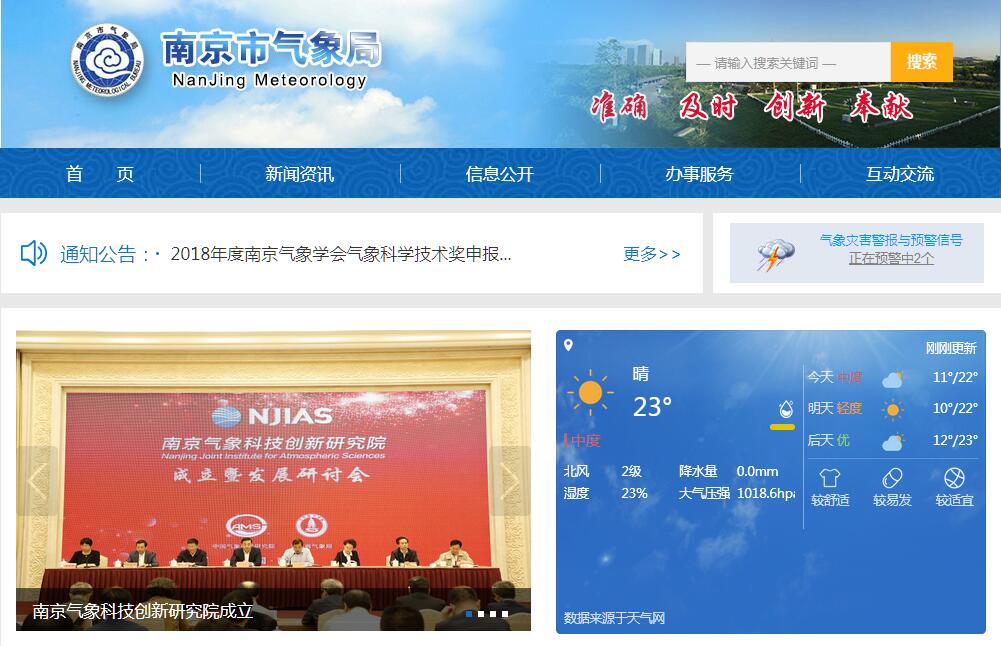 | 网站简介: 南京市气象局实行上级气象主管机构与本级人民政府双重领导,以上级气象主管机构领导为主的管理体制,在江苏省气象局和南京市人民政府领导下,根据授权承担本行政区域内气象工作的政府行政管理职能,依法履行气象主管机构的各项职责。 |