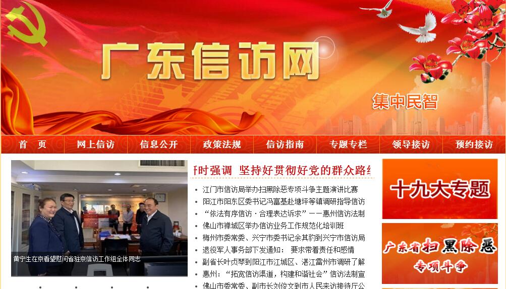 | 网站简介: 广东省信访局主要职责:一、负责处理省内群众和境外人士给省委、省政府的来信,接待群众来访,群众网上信访;及时、准确地向省委、省政府领导反映来信、来访及网上信访中提出的重要建议、意见和问题;综合分析信访信息,开展调研研究,提出制定有关方针、政策的建议。二、承办省委、省政府领导交办的信访事项,督促检查领导有关批示件的落实情况;向市、县和部门交办信访事项,督促检查重要信访事项的处理和落实。三、协调处理跨地区、跨部门的重要信访问题;协调处理群众集体来穗、到京上访和异常、突发信访事件;检查、协调本省党、政、军等部门信访工作和市、县党、政机关的信访工作。四、指导信访业务工作;研究、起草有关信访工作的政策、法规草案;总结推广各地区、各部门信访工作的经验,提出改进和加强信访工作的意见和建议;负责信访工作的宣传和信息发布。五、了解并掌握信访工作队伍建设情况,组织信访干部的培训;指导信访部门办公自动化建设。六、承办人大代表、政协委员向省领导直接反映情况的工作。七、承办省委、省政府和国家信访局交办的其他事项。 |