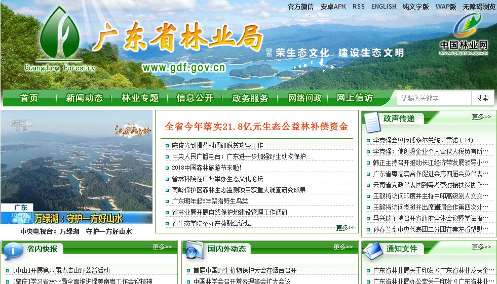 广东省林业局为省人民政府直属机构。其主要职责:(一)贯彻执行国家和省有关林业工作的方针政策和法律法规,起草有关地方性法规、规章草案和发展战略、中长期规划并监督实施;监督管理全省林业及其生态建设;组织开展森林、湿地和陆生野生动植物资源的调查、动态监测和评估,并统一发布相关信息;承担林业生态文明建设的有关工作;协助开展有关国际公约的履约工作。(二)组织、协调、指导和监督全省造林绿化工作。组织、指导和监督全民义务植树、生态公益林建设和效益补偿工作,依法推动退耕还林工作,组织、指导各类公益林和商品林的培育、封山育林和以植树种草等生物措施防治水土流失工作,指导城市林业建设;承担林业应对气候变化的相关工作。(三)承担森林资源保护发展监督管理的责任。组织编制森林采伐限额并监督执行,监督检查林木凭证采伐、运输,组织、指导林地、林权管理,组织实施林权登记、发证工作,拟订林地保护利用总体规划并监督实施,承担林地征用、占用的审核工作。(四)组织、协调、指导和监督全省湿地保护工作。组织拟订全省性、区域性湿地保护规划,组织实施建立湿地保护小区、湿地公园等保护管理工作,负责红树林资源以及滩涂划入生态公益林规划区和划为红树林、鸟类自然保护区的监督管理。(五)组织、协调、指导和监督全省陆生野生动植物资源的保护和开发利用。拟订及调整省重点保护陆生野生动植物名录,报省人民政府批准后发布;承担濒危陆生野生动植物及其产品进出口和国家重点保护的陆生野生动植物及其产品出口的审核工作;监督管理林业生物种质资源、植物新品种保护,按分工负责生物多样性保护的有关工作。(六)负责林业系统自然保护区的监督管理。在国家自然保护区区划、规划以及全省自然保护区规划的指导下,承担森林、陆生野生动植物和有关湿地类型自然保护区以及森林公园的建设和管理工作。(七)承担推进林业改革和维护农民经营林业合法权益的工作。拟订集体林权制度、国有林场等重大林业改革意见并指导监督实施,指导、监督农村林地承包经营和林权流转,指导协调林权纠纷调处工作。(八)组织、协调、指导全省林业产业发展。拟订林业产业发展政策、规划和技术标准并组织实施,指导、协调林业企业原材料基地建设、山区林业综合开发和森林生态旅游的开发、建设、管理工作。(九)组织、协调、指导和监督全省森林资源安全工作。组织、协调、指导和监督森林防扑火、林业行政执法和林业重大违法案件查处等工作,指导、管理森林公安工作,指导林业有害生物的防治、检疫工作。(十)组织、指导建立和实施林业及其生态建设的生态补偿制度。参与编制部门预算并组织实施,提出林业财政性资金安排意见,参与编制政策性森林保险、森林专项贷款计划,监督管理省级林业国有资产和林业基金,指导林业基础设施建设、森林资源资产流转,监督指导林区公路建设和维护管理。(十一)组织、指导林业及其生态建设的科学研究、宣传教育和交流与合作,指导国有林场和林业基层工作机构的建设和管理。(十二)承办省人民政府和国家林业局交办的其他事项。