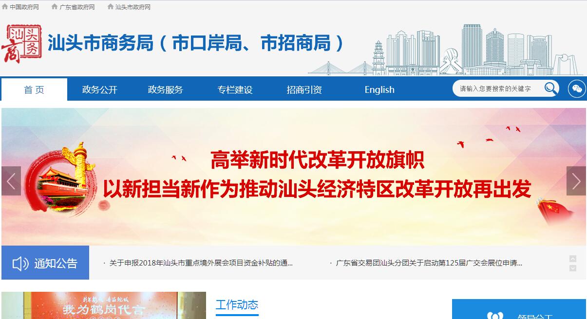 根据《中共汕头市委 汕头市人民政府关于印发〈汕头市人民政府职能转变和机构改革方案〉的通知》(汕市发〔2014〕8号),设立汕头市商务局(汕头市口岸局),为市人民政府工作部门。其主要职责:(一)贯彻执行国家、省、市商务管理及口岸工作有关方针政策和法律法规,起草有关特区法规、地方性法规、规章草案并组织实施;研究国内外贸易、现代流通方式的发展趋势并提出政策建议。(二)拟订全市商务和口岸发展战略、规划、计划并组织实施;拟订市场体系建设、内外贸易发展的政策措施并组织实施,加快推进现代市场体系建设,推动商贸服务平台建设;推进内外贸融合发展;优化商贸流通产业布局和结构。(三)牵头拟订有关健全和规范城乡市场发展的政策;建立市场诚信公共服务平台,推动商务领域信用建设;推进农村市场体系建设,指导大宗产品批发市场规划和城市商业网点规划、商业体系建设;促进商贸流通体制改革,协调解决商贸流通中的重大问题;推进流通标准化。(四)负责整顿和规范市场经济秩序的相关协调工作;拟订并组织实施规范市场运行、流通秩序的政策措施;监测分析商务运行态势、商品供求,进行预测预警和信息引导;负责建立健全生活必需品市场供应应急管理机制;负责重要消费品储备的管理和市场调控工作。(五)拟订并组织实施会展、电子商务、商务服务等发展规划和政策措施;推进连锁经营、商业特许经营、物流配送等现代流通方式发展;促进贸易增长方式转变,指导和协调贸易促进体系建设,推动电子商务服务体系和平台建设;促进商贸中小企业发展,指导商品贸易结构调整;推动流通业品牌建设。(六)制定并组织流通业产业政策,提出优化产业布局、结构的政策建议并组织实施;负责流通行业发展工作,指导和管理再生资源回收相关工作;依法对拍卖、典当、租赁、汽车流通和旧货流通业等进行监督管理;组织实施进出口商品目录。(七)牵头拟订全市服务贸易发展计划,负责商贸服务业(含批发、零售、家政、餐饮、住宿业等)管理、发展相关工作;指导服务贸易领域的对外开放;会同有关部门制定促进服务出口和服务外包发展的规划、政策措施并组织实施;推动服务外包平台建设。(八)拟订并组织实施优化机电产品、高新技术产品进出口结构和对外技术贸易的政策措施;组织实施科技兴贸战略和国际品牌建设;负责监督协调机电产品国际招投标;推进进出口贸易标准化。(九)拟订本市招商引资、对外投资规划、计划并组织实施;承担重大项目对外招商和跟踪服务工作;负责协调和指导本市招商引资、投资促进工作;负责对外投资管理和服务工作;参与制定本市促进投资规划和改善投资环境的政策措施。(十)指导全市外商投资工作,参与制订利用外资工作的发展战略和中长期规划,依法承担外商投资企业的审批审核等工作,依法监督检查外商投资企业执行有关法律法规和合同、章程情况;指导加工贸易工作,依法监督管理本市加工贸易进出口工作。(十一)负责国内外经济合作工作;拟订并组织实施有关经济合作的政策措施和管理办法;依法管理、监督和服务境外投资、对外承包工程、对外劳务合作等对外经济合作业务。参与各经济类开发区及保税监管区域建设发展的规划、政策引导以及协调、指导工作。(十二)拟订全市商务交流计划并组织实施;负责全市性商务和口岸的重要外事活动;指导本系统外事和对外交流工作;推进海外经贸网络规划布局;负责本市与港澳台地区商务交流工作;负责区域经贸合作、协作相关工作。(十三)协调口岸建设;协助上级部门对口岸进行验收;综合协调和指导下级口岸管理机构的工作,负责口岸信息发布;参与口岸综合管理。(十四)承担配合组织协调反倾销、反补贴、保障措施及其他进出口公平贸易相关工作;综合协调本市有关世界贸易组织事务的具体工作;依法配合组织产业损害调查及其他贸易救济措施,指导协调国外对本市出口商品的反倾销、反补贴、保障措施的应诉工作;依法配合对经营者集中行为的调查及其他反垄断相关工作。(十五)承办市委、市政府和上级有关部门交办的其他事项。